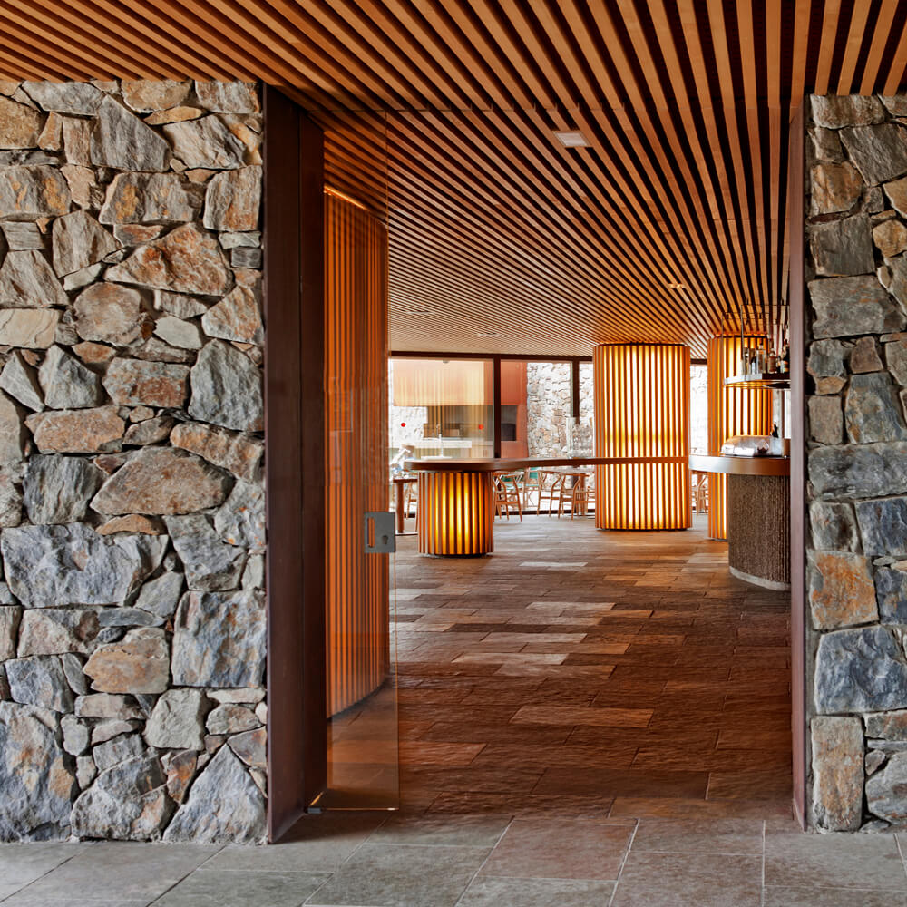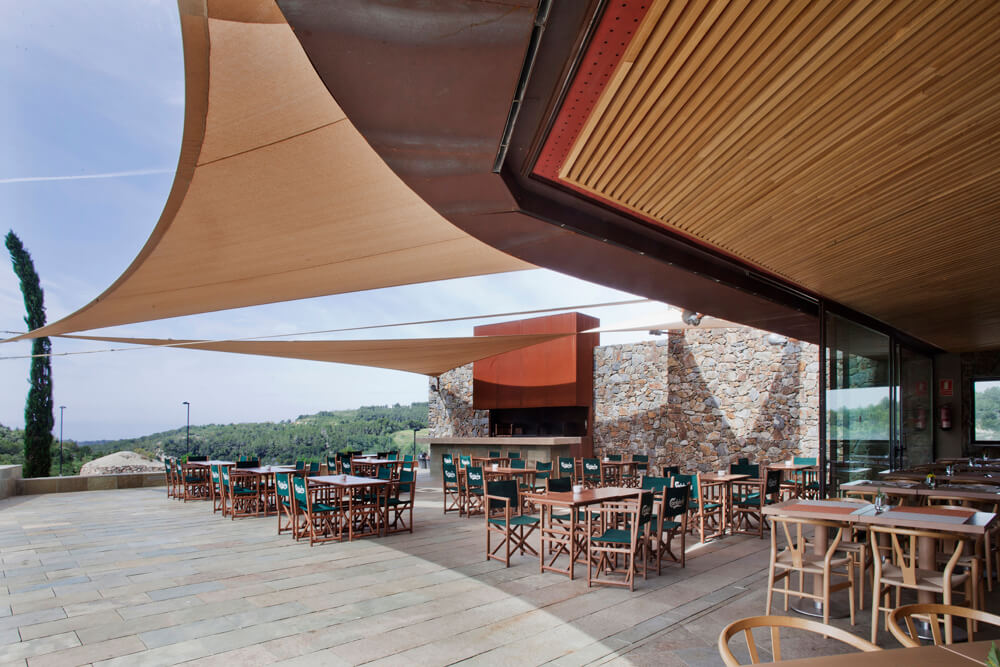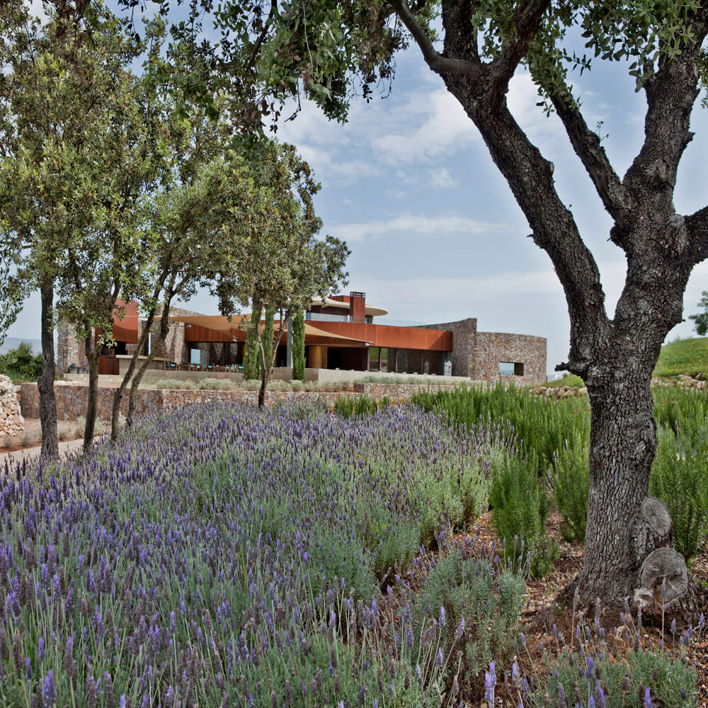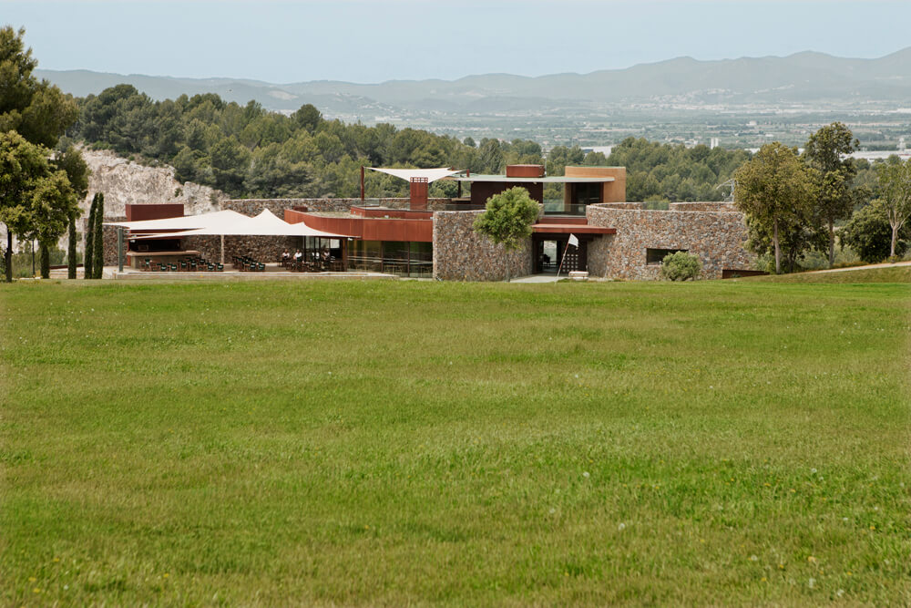 The garden extends from the outdoor terraces on the first floorlevel,with the lounge areas. Plant species that need little water and the incorporation of a traditional dry stone shepherd’s hut that already existed on thesite contribute to the garden. The program comes complete with two parking lots:one to the back of the building,with one reserved for loading and unloading, and another across the cobblestone street and green spaces that provides access to the clubhouse. Other ring roads and paths were designed connecting the area with thedifferent areas of the golf course.