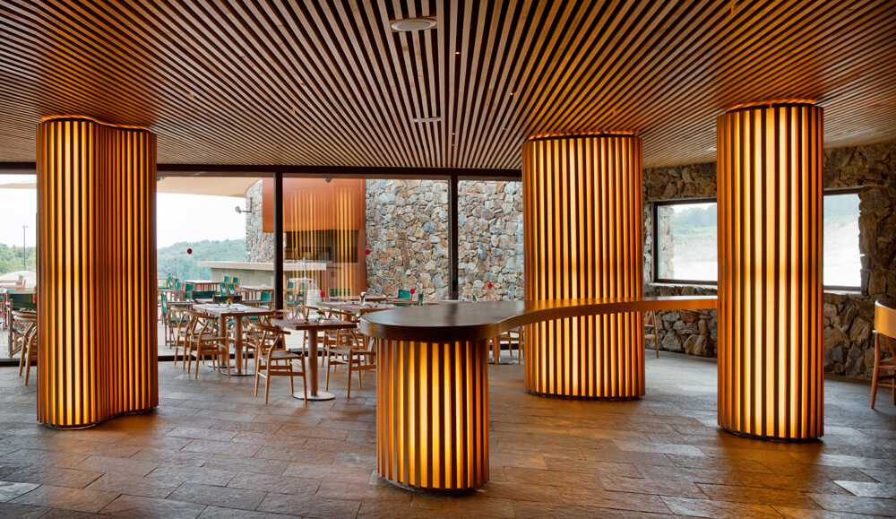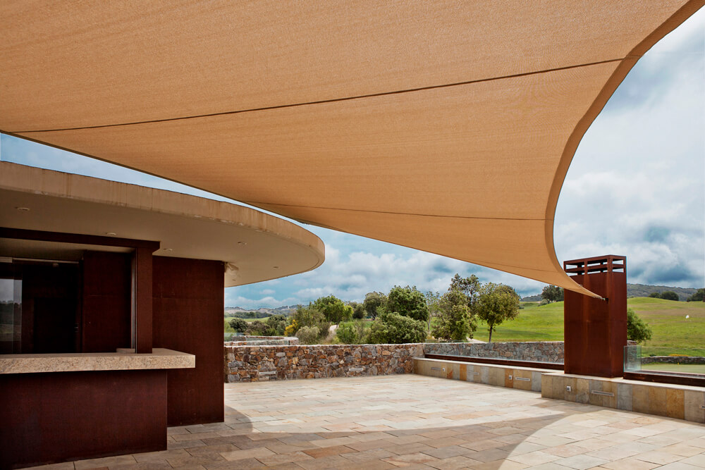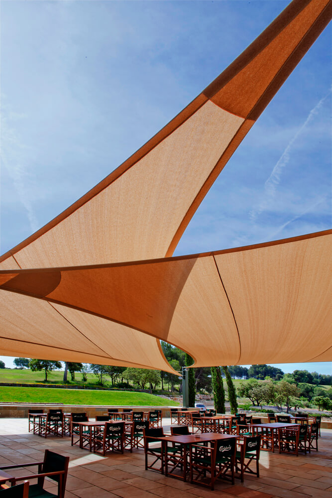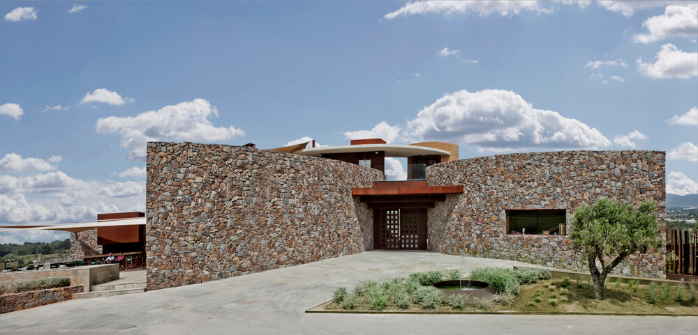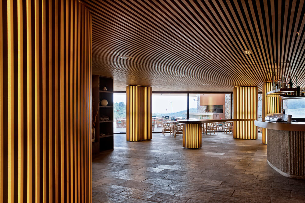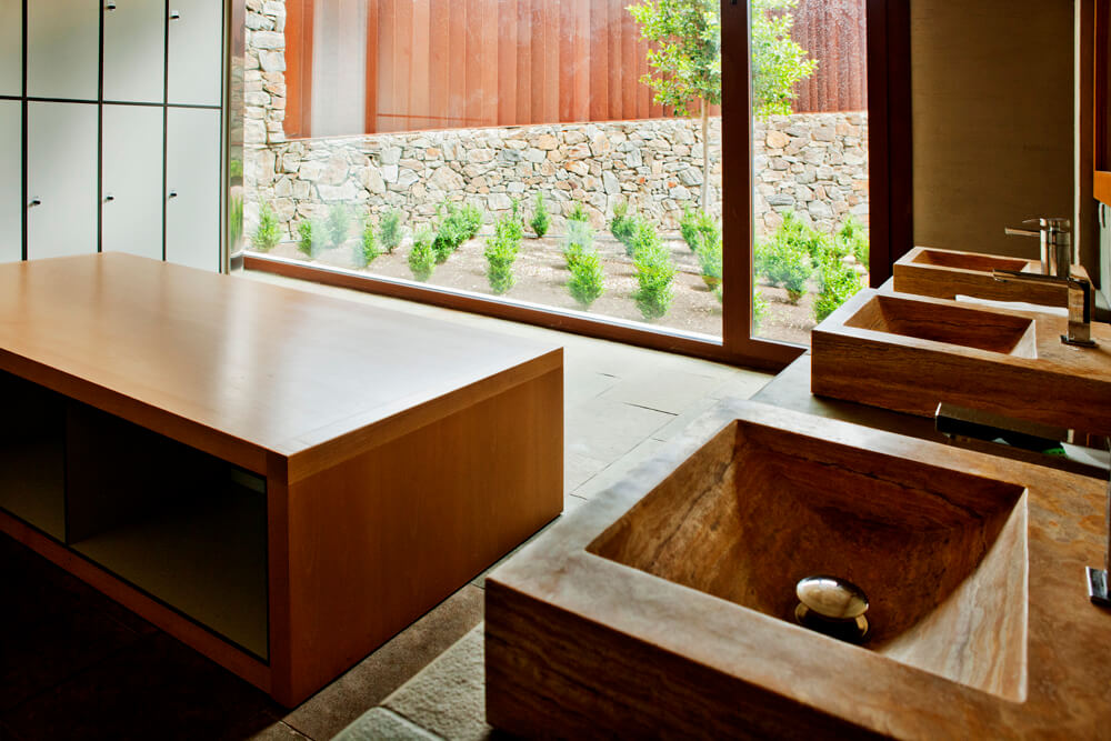 The garden extends from the outdoor terraces on the first floorlevel,with the lounge areas. Plant species that need little water and the incorporation of a traditional dry stone shepherd’s hut that already existed on thesite contribute to the garden. The program comes complete with two parking lots:one to the back of the building,with one reserved for loading and unloading, and another across the cobblestone street and green spaces that provides access to the clubhouse. Other ring roads and paths were designed connecting the area with thedifferent areas of the golf course.