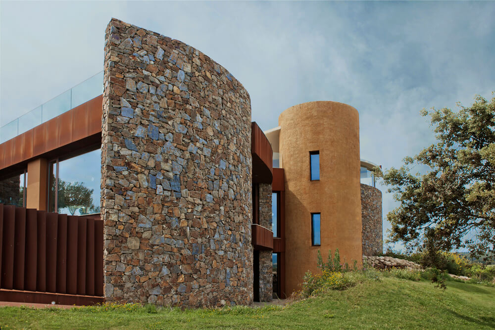 Two impressive curved walls form the basic structure of the architectural volume. These meet in the entrance of the building forming the hall and are organized around the cylindrical volume of the staircase. They also enclose and arrange the various program activities on three levels on both sides of the hall: the first floor houses the social spaces, bar, restaurant, lounge, shop and offices; the basement houses the dressing rooms, storage and a garage for golf carts, and finally, the roof for use in summer, with a chill out candle-lit terrace-bar. The tower that houses the staircase provides the building with a uniquE feature.