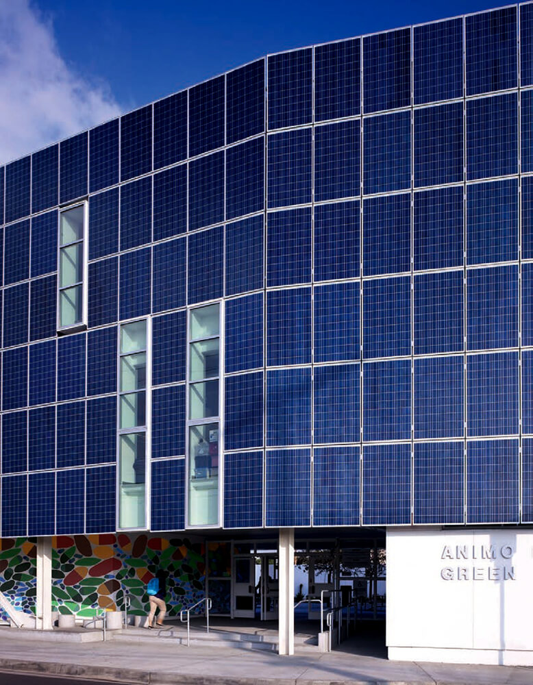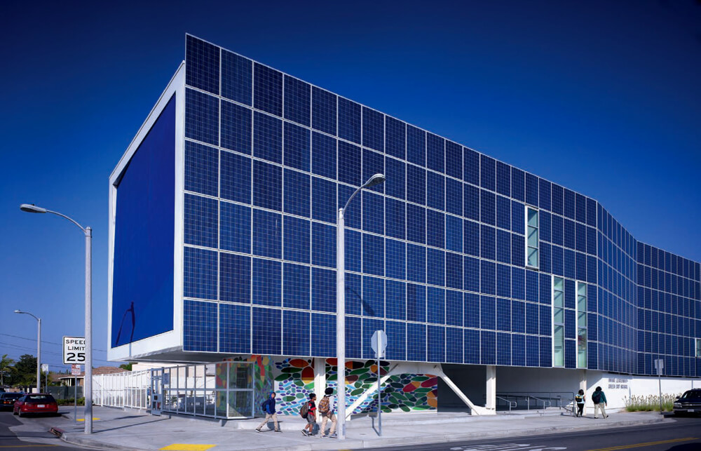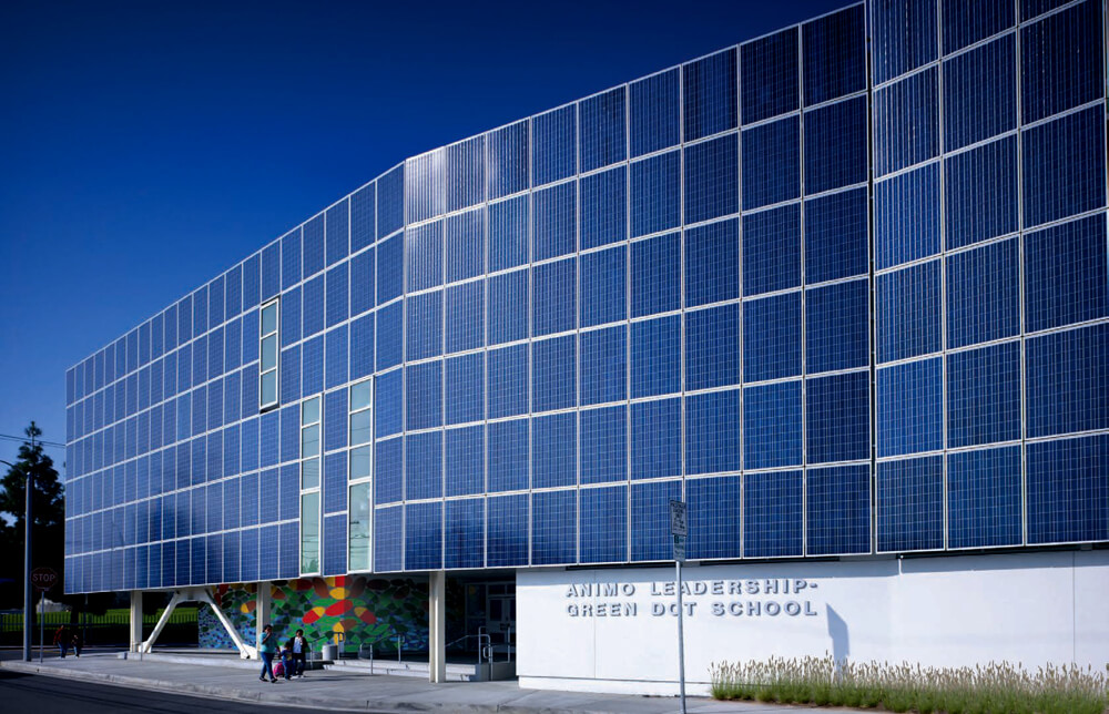 Similarly, this project is designed to enhance passive sustainable strategies. It allows for abundant natural light, ventilation and view, while shading itself and inducing airflow. The south facade is clad with 650 solar panels that shade the building and provides 75% of the energy needs for the school. Implementing these strategies will reduce carbon emissions by over 3 million pounds.