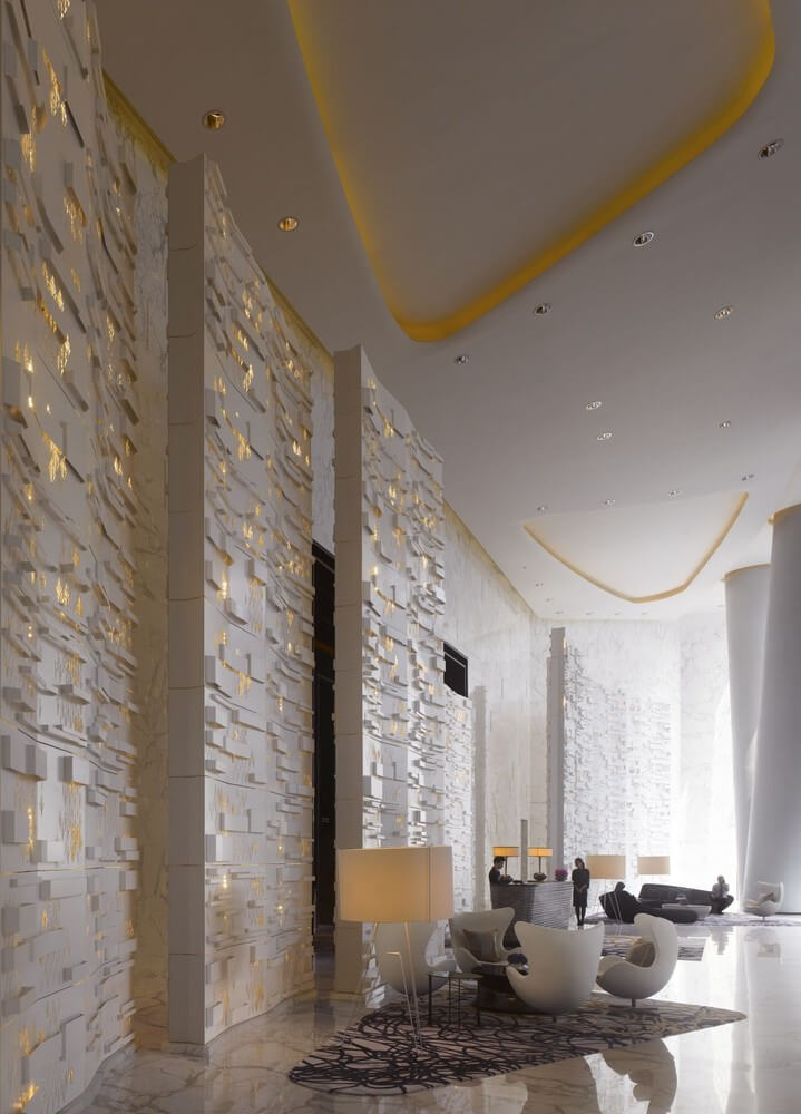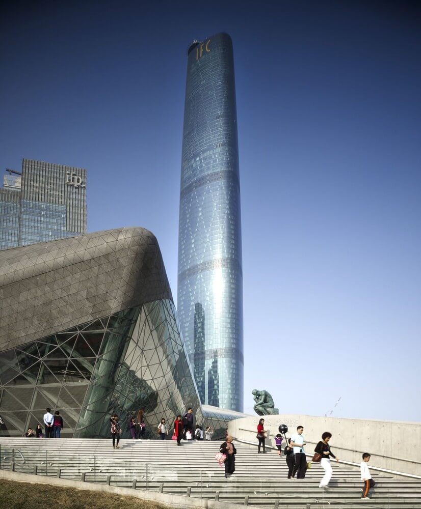 Conceived as a slender crystalline form, the tower will landmark Guangzhou Zhujiang New Town’s main axis, which links the commercial district in the north with the Pearl River to the south. The need for efficient internal space layouts and excellent environmental performance was covered with its triangular plan. The base build was completed in late 2010 in time for Guangzhou hosting the Asia Games and the hotel fit-out is scheduled for completion by autumn 2011. The building was named 2011 Best Tall Building in Asia/Australasia by the Council on Tall Buildings and Urban Habitat.