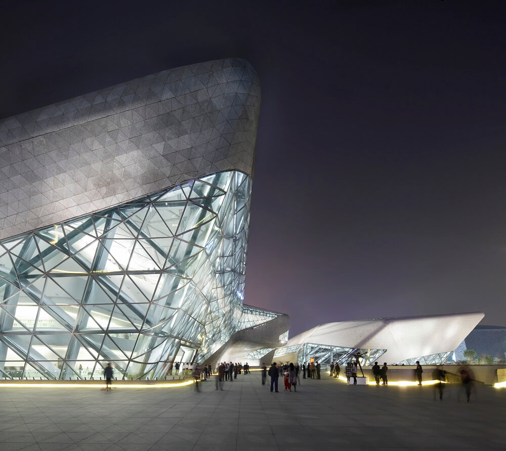The concepts of a natural landscape and the fascinating interplay between architecture and nature evolved the design. It engages with the principles of erosion, geology and topography. River valleys and the way in which they are transformed by erosion particularly influenced the Guangzhou Opera House design.