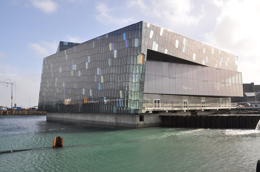 The Concert Hall and Conference Centre has a clear view of the enormous sea and the mountains surrounding Reykjavik in an area of 28,000m² at a solitary spot. An arrival and foyer area are found in the front of the building, four halls in the middle and a backstage area with offices, administration, rehearsal hall and changing room in the back of the building. The three large halls have public access on the south side and backstage access from the north and are placed next to each other with. A multifunctional hall with room for more intimate shows and banquets lies on the fourth floor.