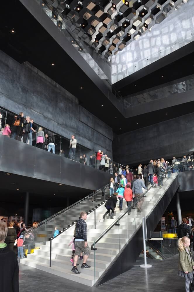 The Centre sits on the border between land and sea, standing out as a large, radiant sculpture reflecting both sky and harbour space as well as the vibrant life of the city. Henning Larsen Architects, the artist Olafur Eliasson with Danish-Iceland roots and the engineering companies Rambøll and ArtEngineering GmbH from Germany collaborated to design the spectacular facades.