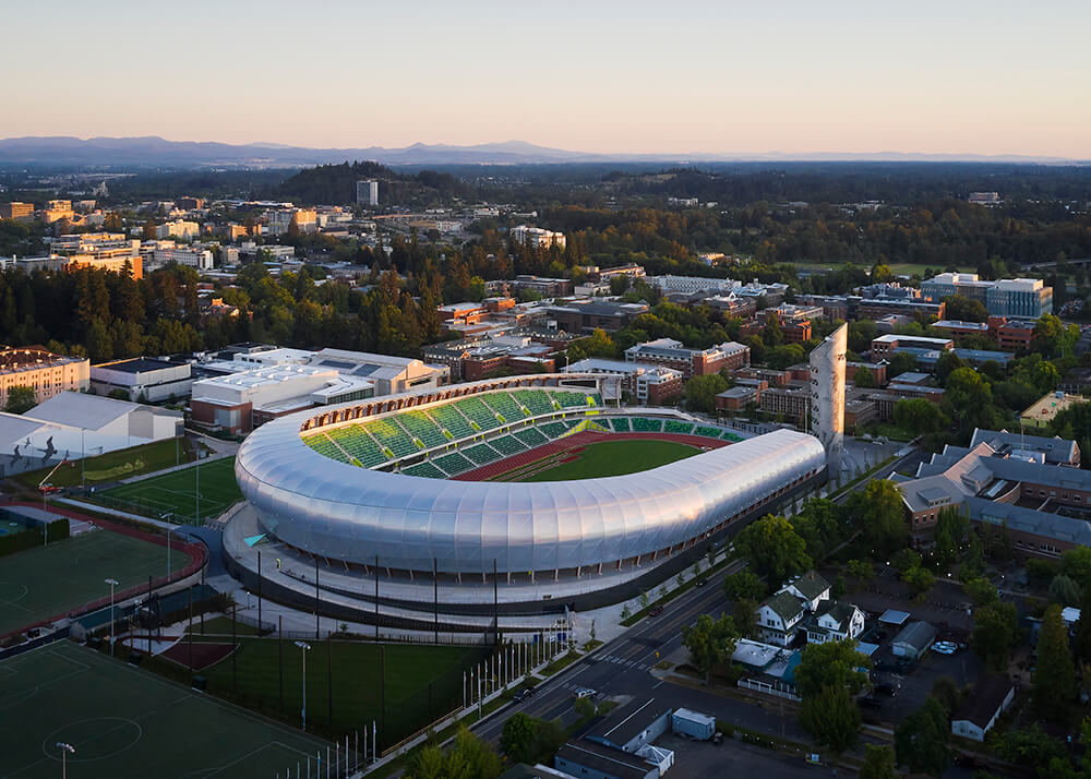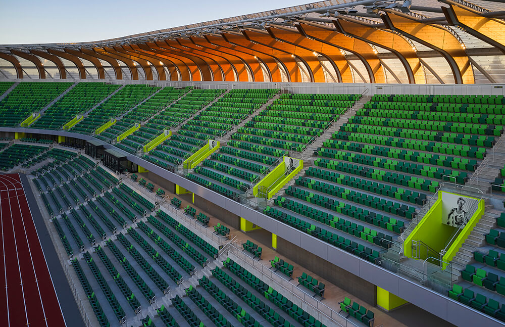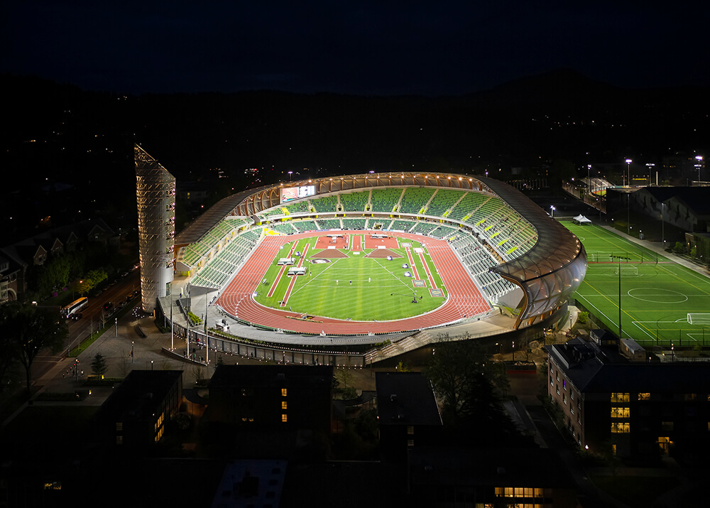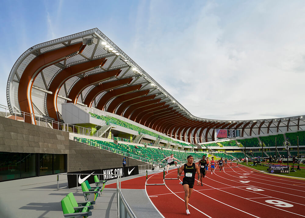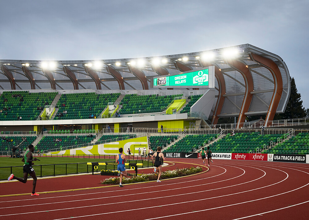 Envisioned as the “finest track and field facility in the world,” the reimagined Hayward Field is designed to give University of Oregon’s championship caliber student athletes, and athletes from around the world, an unparalleled stage on which to push the limits of what is possible. A true theater for track, Hayward Field sets a new standard for fan experience and connection to the sport with comfortable seating for every single patron, a diversity of in-stadium food and beverage amenities, great sight lines and close proximity to the athletes and the action.