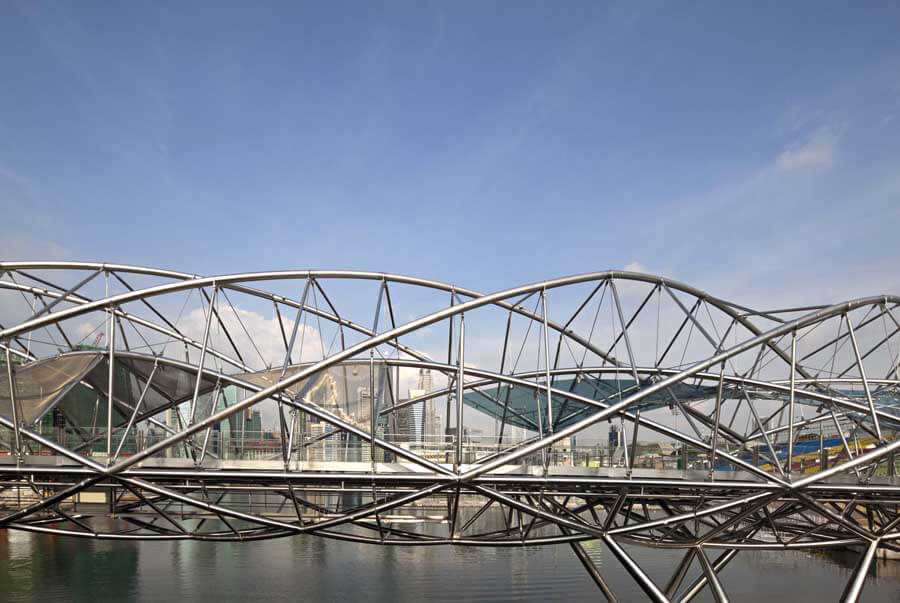 Helix Bridge in Singapore was designed to create a pedestrian connection across the head of the Singapore River, having the city’s existing CBD on one side and its new Bayfront district on the other. The bridge was commissioned as the winning design of an international competition in 2006.