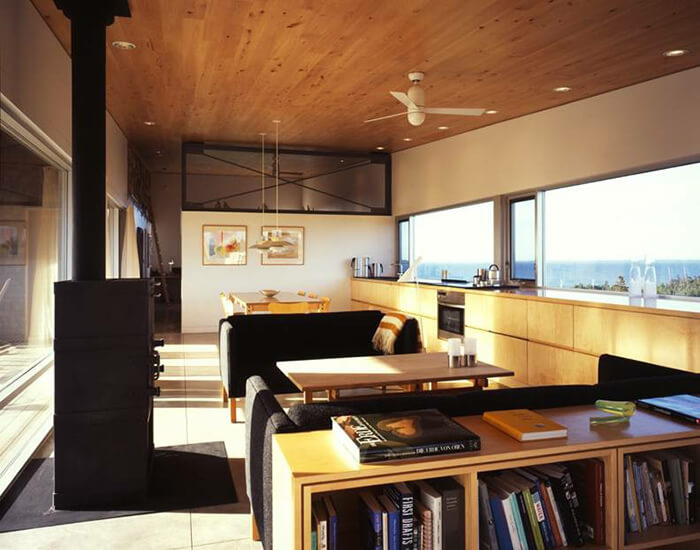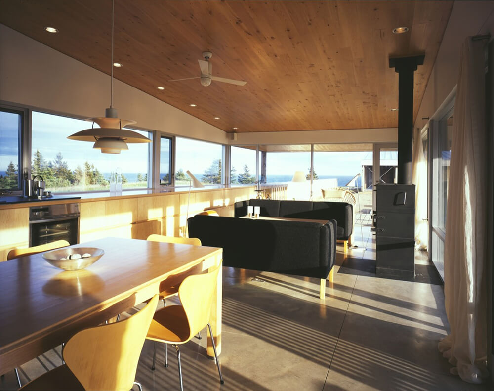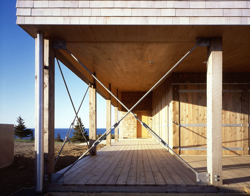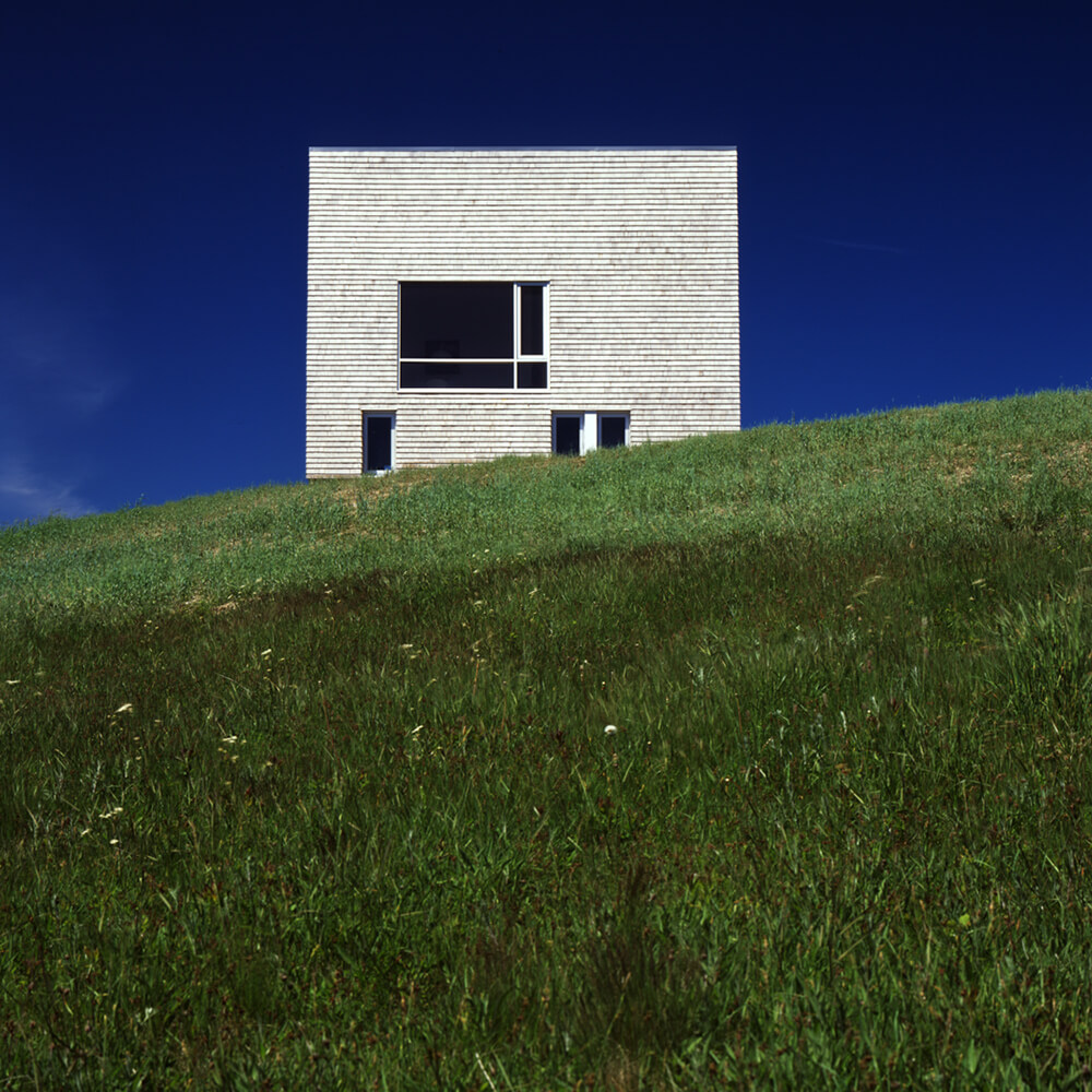 The Hill House is a logical extension of a continuous line of research. It follows the ‘space between’ focus found in the ‘House on the Nova Scotia Coast No. 22’, and it pushes the monolithic tectonic strategy of Messenger House II with its zero-detailing. A plain, rough-weather wrapper is of eastern cedar shingles.