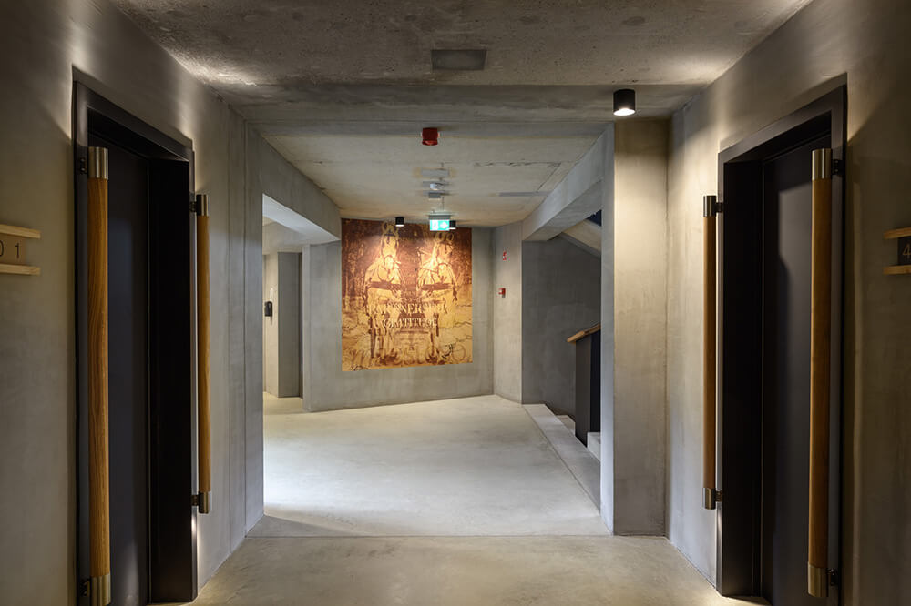 Special attention was devoted to the planned expansion of accommodation capacity, which would contribute to the already substantial built mass. Crucially, all the existing service- and other un(der)used facilities are repurposed as new accommodation; in this way, the increase in capacity is found primarily on the inside rather than on the outside. The only additions to the original volume are a reduced deck floor, which replaces the currently unused gable roof, and a short courtside wing of the hotel. The latter does double duty of also blocking the views from the existing rooms onto the service yard, another insensitive formerly intervention into this delicate space.
