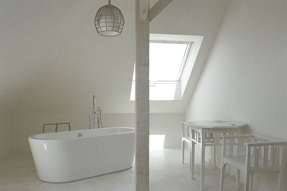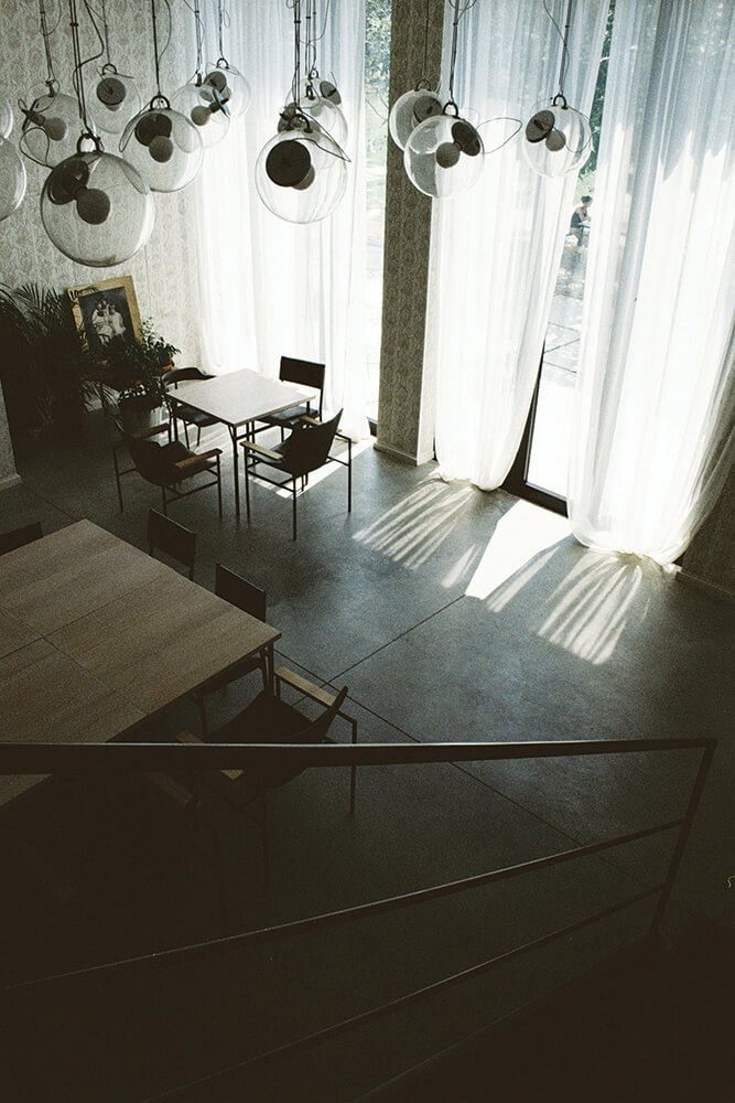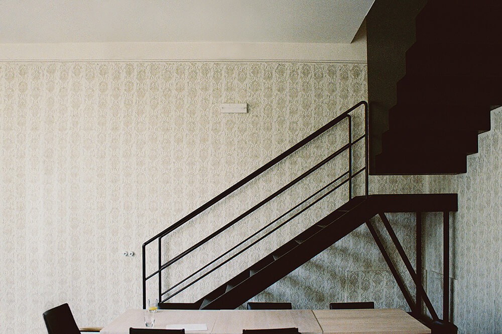 The new program of the guest house, consisting of communal dining room with a porch, two salons, master apartment, kitchen and toilets on the ground level, five apartments and a terrace on the upper level and a wine cellar with a club space in the underground, was quite different from the previous ground floor family house.