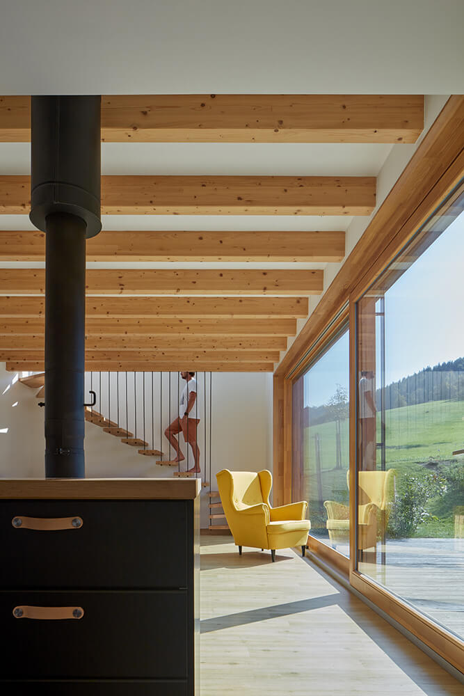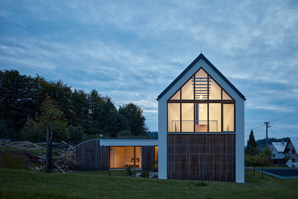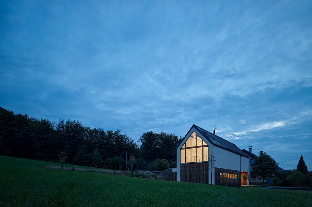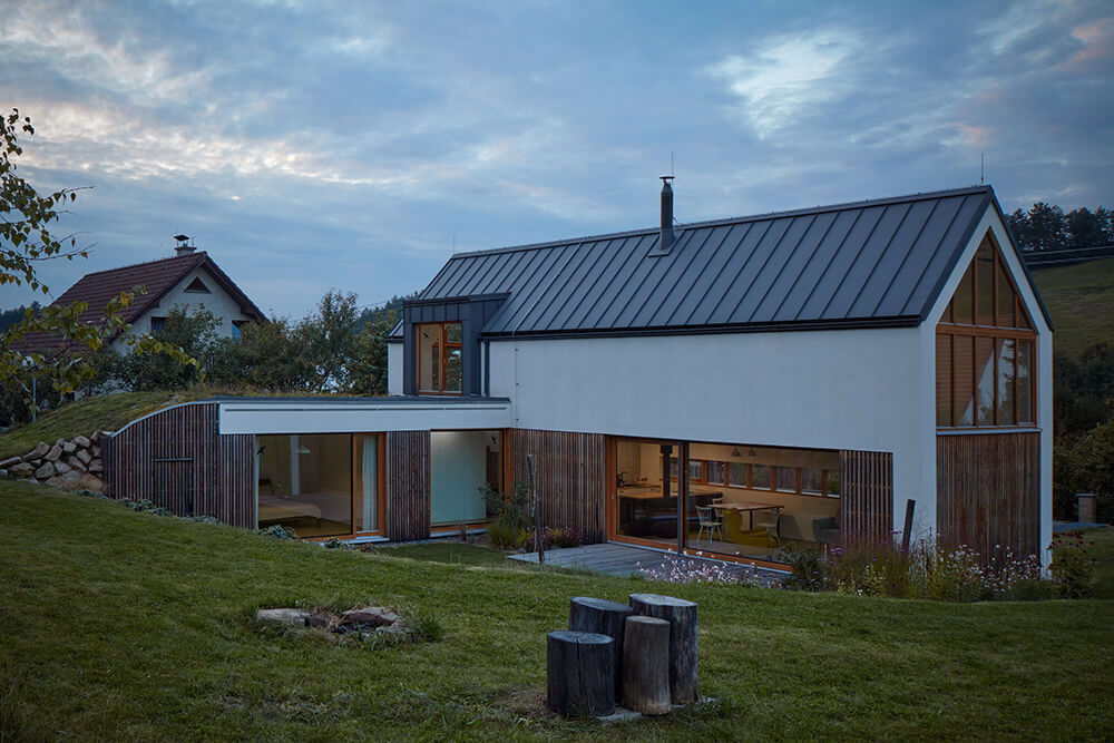 Premek´s land looked like a nice peaceful meadow under the forest but the whole thing looked easier than it actually was. The land lies on the border of the third and fourth zones of the Beskydy Protected Landscape Area. Even though there are original buildings from the 1970s all around, we had to make a great effort to build this house. The orientation of the plot was not quite ideal either but nothing we could not handle.