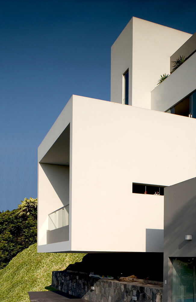 The house is located on the side of one of the hills of Las Casuarinas, Lima (Peru).
