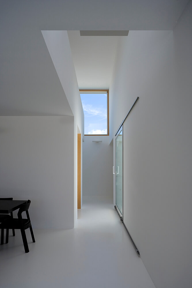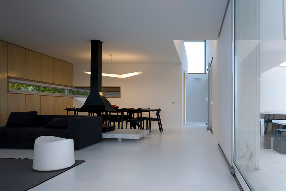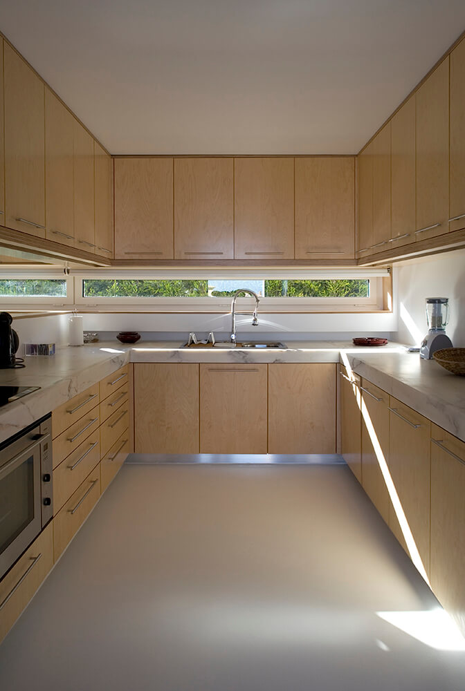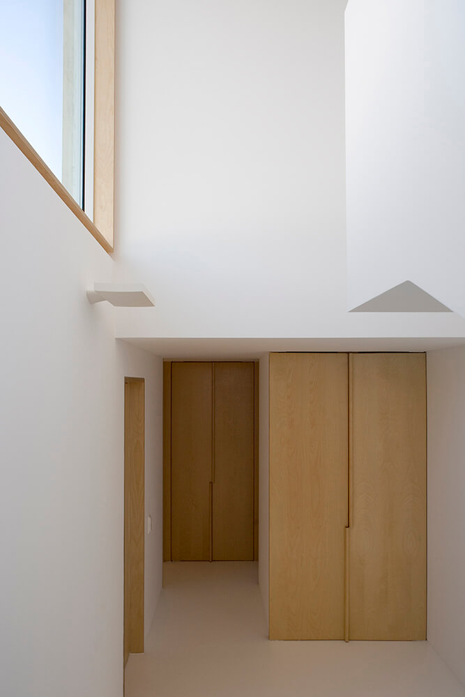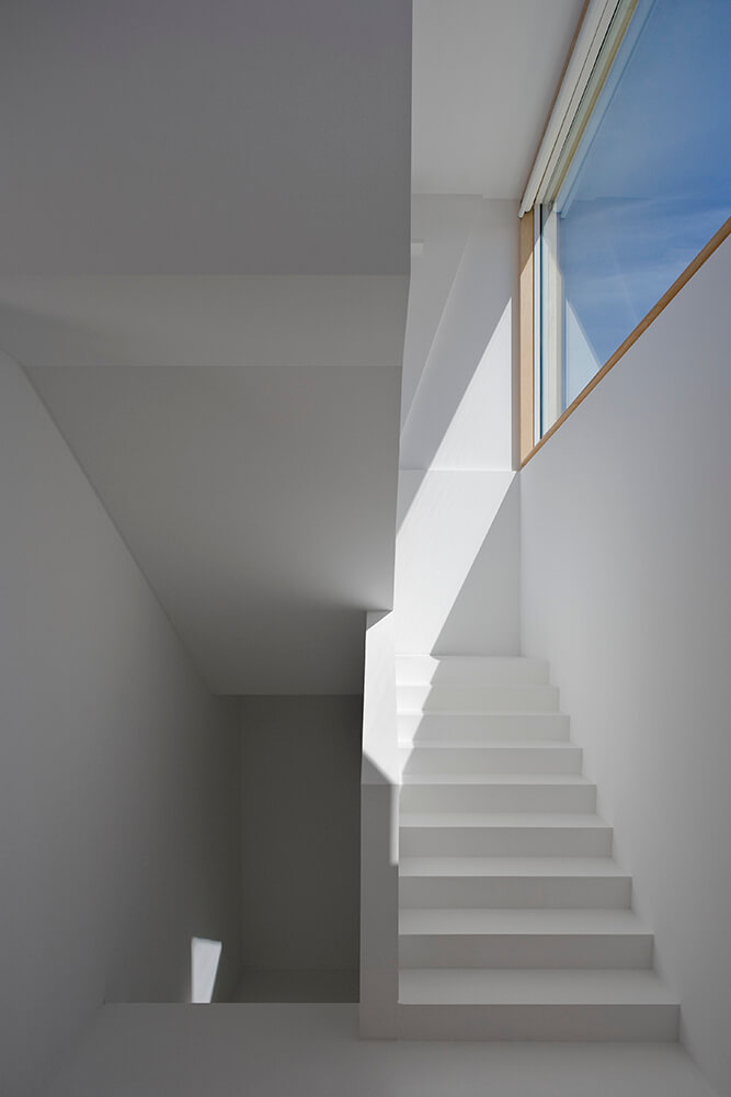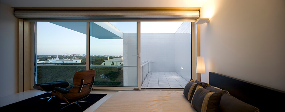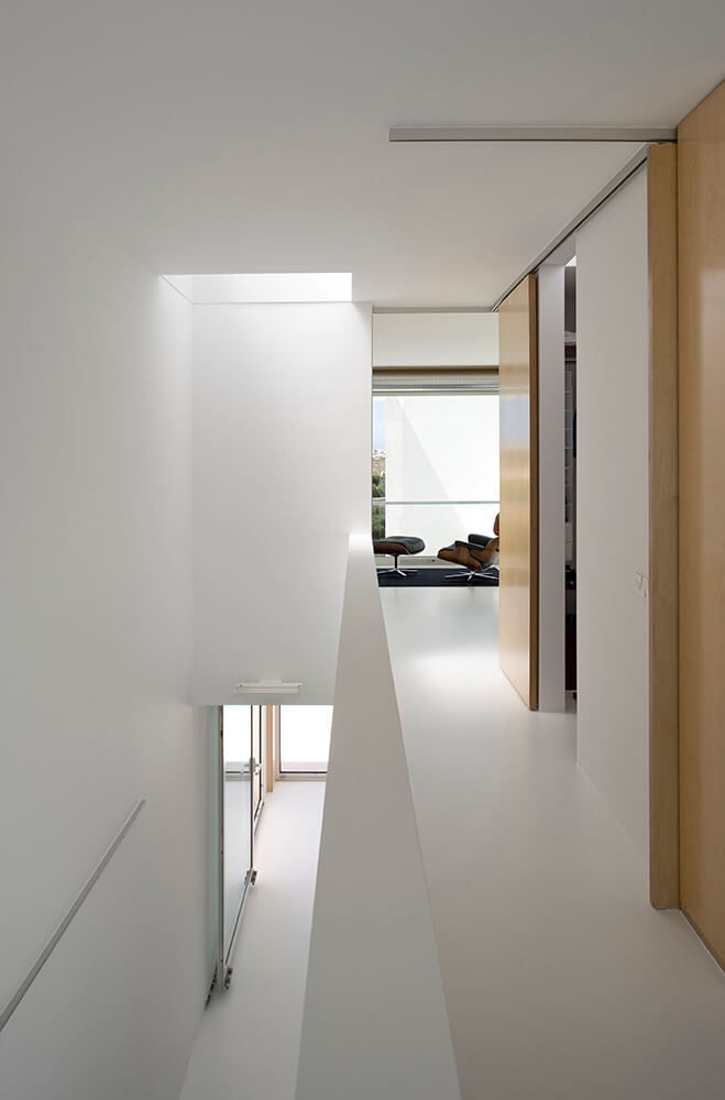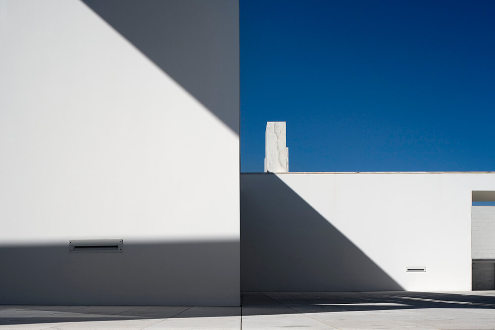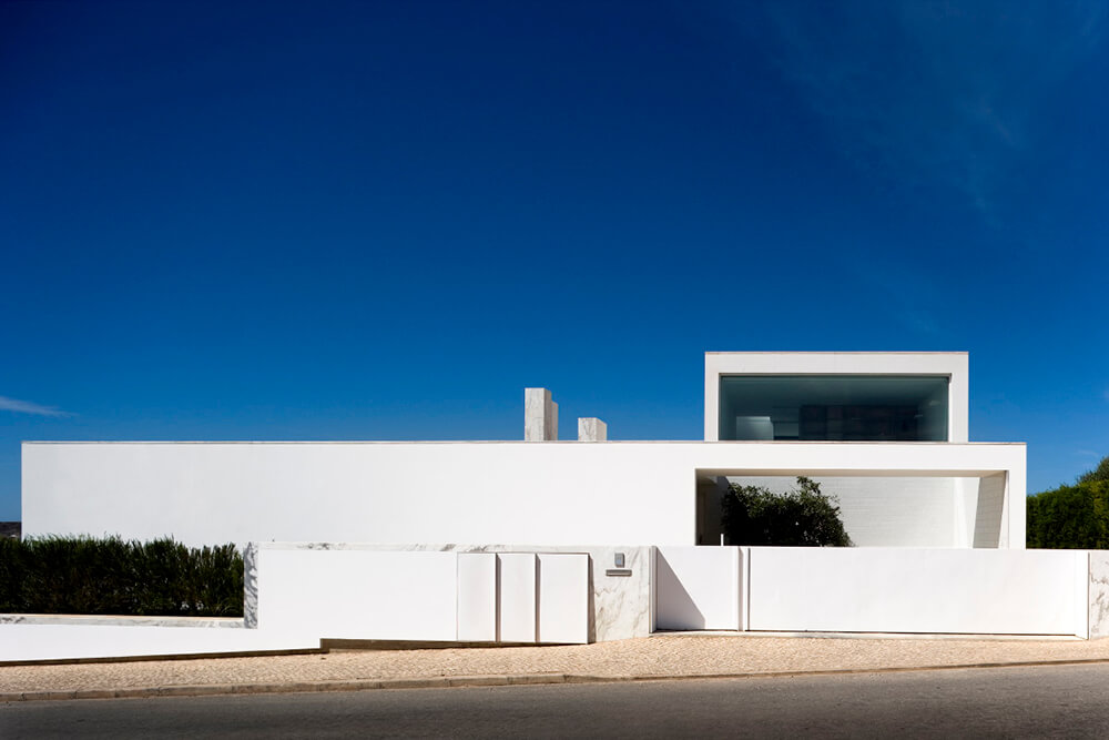 Inside-outside spatial relationships are articulated through the tiled court-yards, protecting the large glazed windows from the strong direct sun light, while filtering and reframing fragments on untouched landscape. On the exterior, the house life leans over the nearby valley. The white house with flat roofs, recovers ancient local architectural typologies, where fruits and fish were dried on terraces, a feature that touristic developments seem to forget.