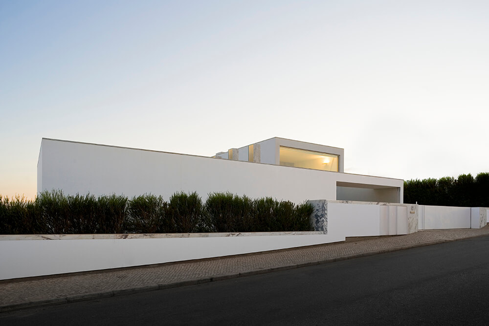This house project was developed on the strict respect to the rules of the urbanization master-plan, in its distances to the lot limits, footprint, gross construction surface and volumetric zoning. The longest and higher volume is located on the north side, shaping a quiet marble patio, protected from dominant winds. The lower volume of the bedrooms faces the road creating an “L” shaped house, while providing more privacy to the swimming-pool patio.