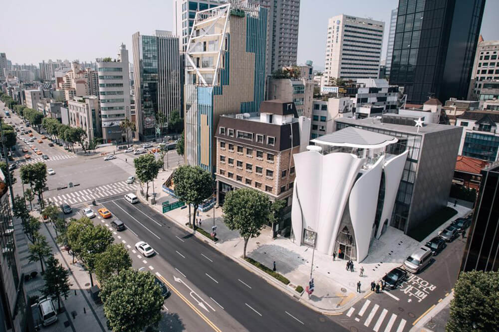 This innovative and unique building that is nestled in the heart of the city’s elegant Cheongdam-dong, Gangnam-gu district has been designed by the French architect Christian de Portzamparc, winner of architecture’s prestigious Pritzker Prize. The interiors of the building are the work of the internationally renowned architect Peter Marino.