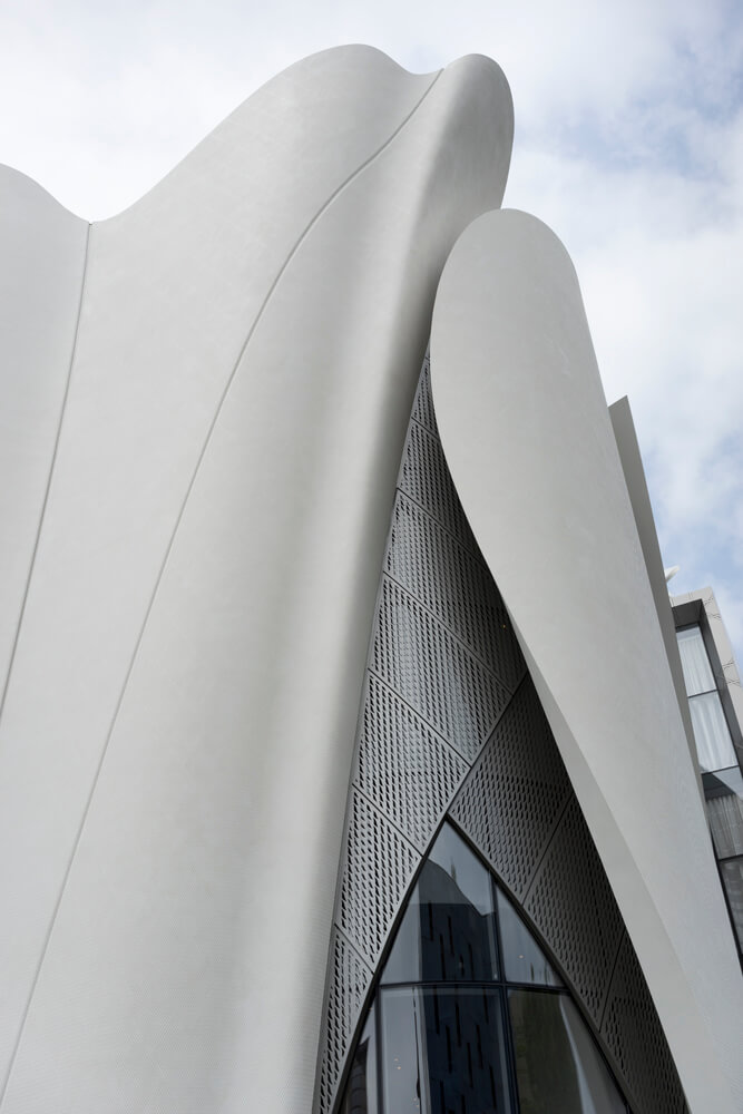 “I wanted the building to be a representation of Dior, being able to reflect Christian Dior’s work. So the surfaces was my intention to flow, like the couturier’s soft, woven white cotton fabric. These surfaces are made from long moulded fiber glass shells, fitted together with aircraft precision as they soar into the sky and undulate as if in motion, crossed by a few lines.