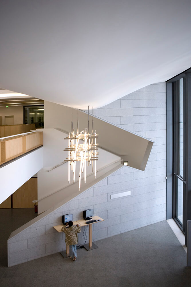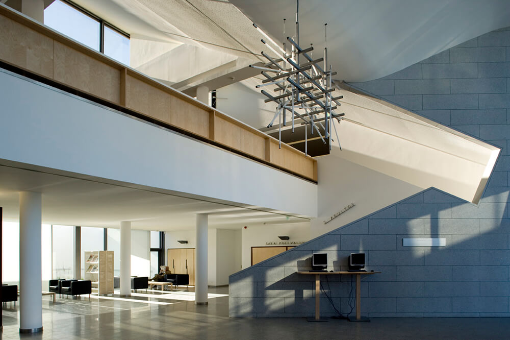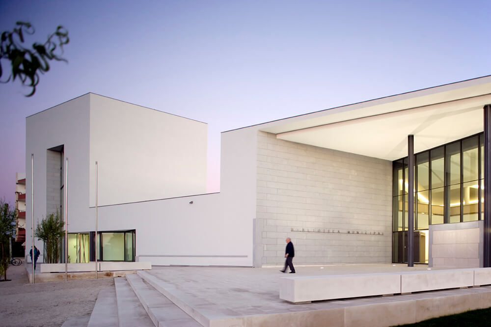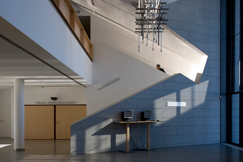 The building is located on the periphery of the town, an area with little urban expansion, still fairly inarticulated and problematic. We chose not only to design an object, the library, but to intervene in the clarification and consolidation of urban fragments and volumes with no apparent overall coherence.