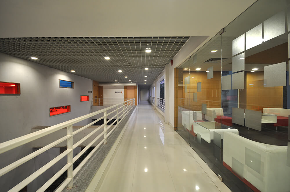– The site, situated in a very dense residential urban fabric, was a huge constraint and dictated linear planning. Special efforts were made to ensure creation of non-monotonous spaces which did not follow expected linear pattern.