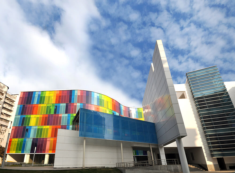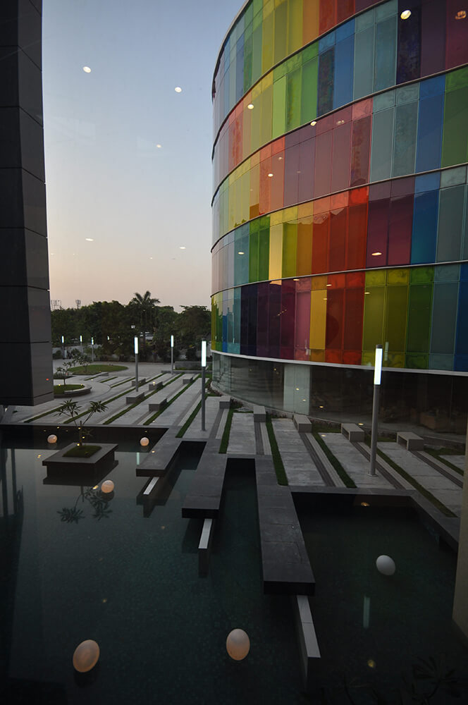 Kolkata is an ancient city in eastern part of India. Post Independence, this city has not grown like others in India, and has not yet adopted architectural characters. On the contrary this city is becoming more chaotic & mono dramatic. But the city definitely has vibrant life, and people here have love for Art & Culture. As client vision was to give the most expressive, vibrant, technologically advanced & sustainable management institute, we thought about adding colours to city life.