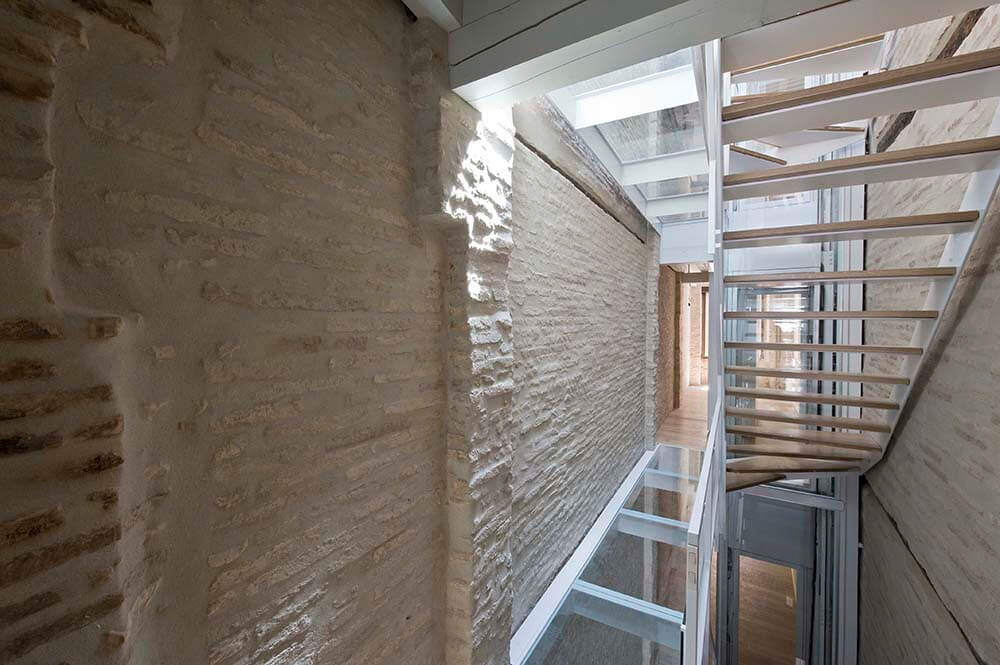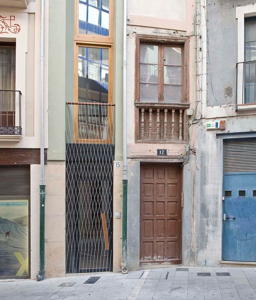 This is a project about the restoration of a building between two party walls defined by a medieval division into lots old town. The plot is stretched in order to light up in two parallel streets and around 19 meters far from each other. The minimal width of 2.20 meters makes it worthy of being qualified as “unagi no nedoko”, which are narrow residual plots in Japanese cities.