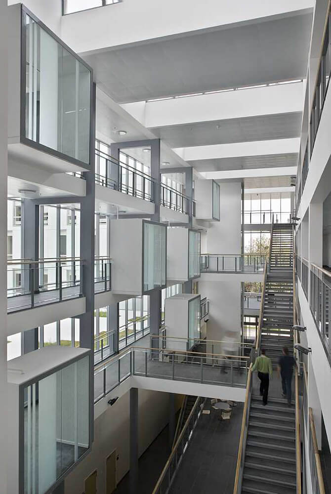The elegant 10,000m2 complex is composed of three elements: an entrance hall which opens onto a square with a large glass panel, behind which is a U-shaped building, and an intervening courtyard area which links the two buildings together. Incuba Science Park is equipped with flexible open areas which can be adapted to fulfill various functions.