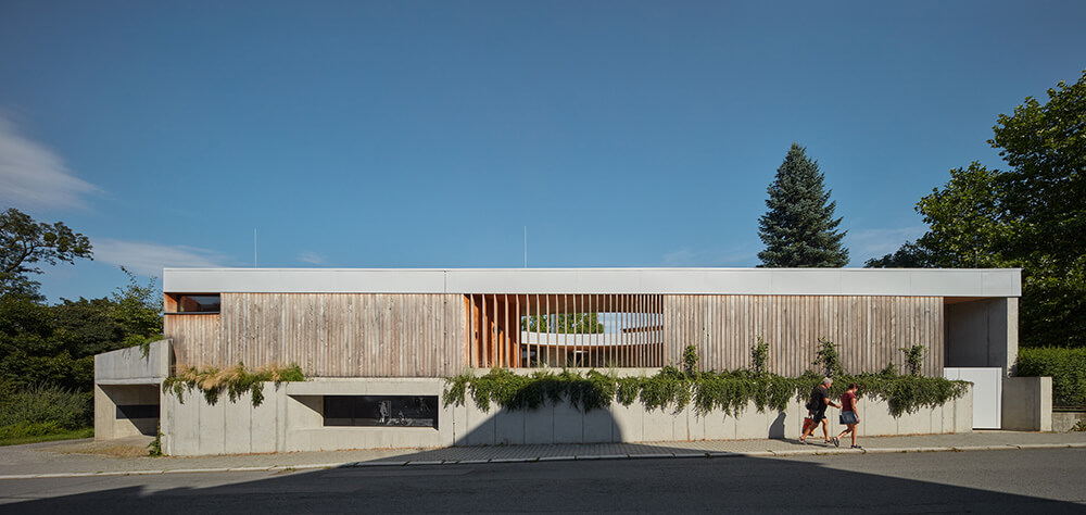 This residential project is located very conveniently near the historical town centre. But also, in the close vicinity of large parklands that have favourable influence on the local microclimate. Another great advantage of this location is a fragile network of social connections to its surroundings, such as proximity to the places of work and schools, family ties and cultural events in the Nový Jičín. The client wished to live largely in the open air, a brief that was not easy to fulfil as the plot was small and complex in terms of town planning regulations.