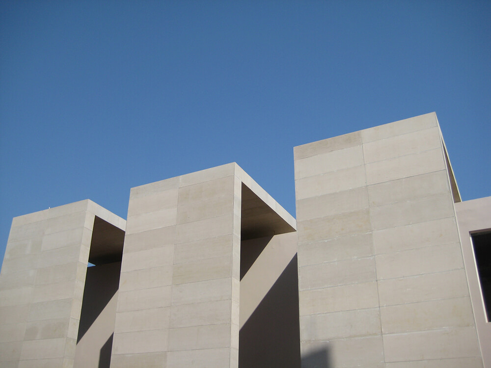 The huge library block has been strategically placed to cast shadows all over the central plaza at different times of the day to create comfortable outdoor spaces in the scorching heat. To substantially cut down heat absorption, large overhangs have been integrated in the design from the very beginning to create huge shadows on the building itself and the outdoor spaces.