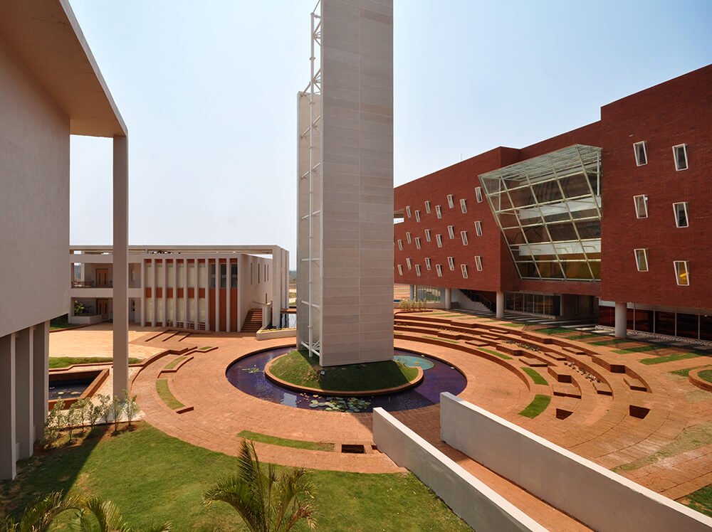 IMI Bhubaneswar aims at presenting a timeless piece of architecture which bridges the gap between the past and the present cultural and social life of the Orissan people. Instead of letting the treasures be a part of the past, we attempt to recreate it in a modern setting, so we remember our roots, yet grow with time.