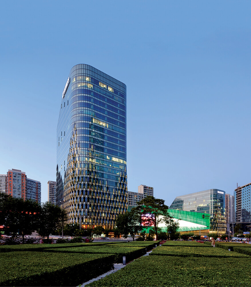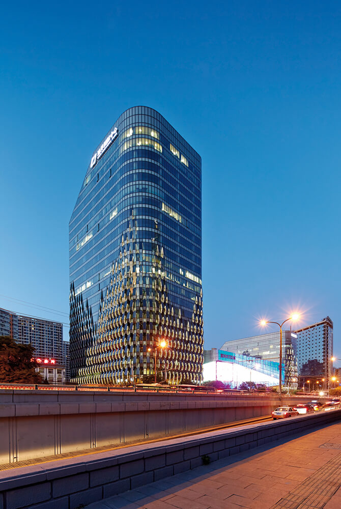 Jin Mian Xin Cheng, an eye-catching mixed-use development adjacent to Beijing’s Fourth Ring Road, was the winner of a ‘Best Office and Business Development’ accolade at the MIPIM Asia Awards 2013. The development consists of two office towers and a retail podium immediately adjacent to the road, with a protected public plaza to their rear. Given that the massing of the blocks was predicated and constrained by the sunlight requirements of a residential development to the north of the site, SPARK’s work focused on the detailed design of the façade and landscape.