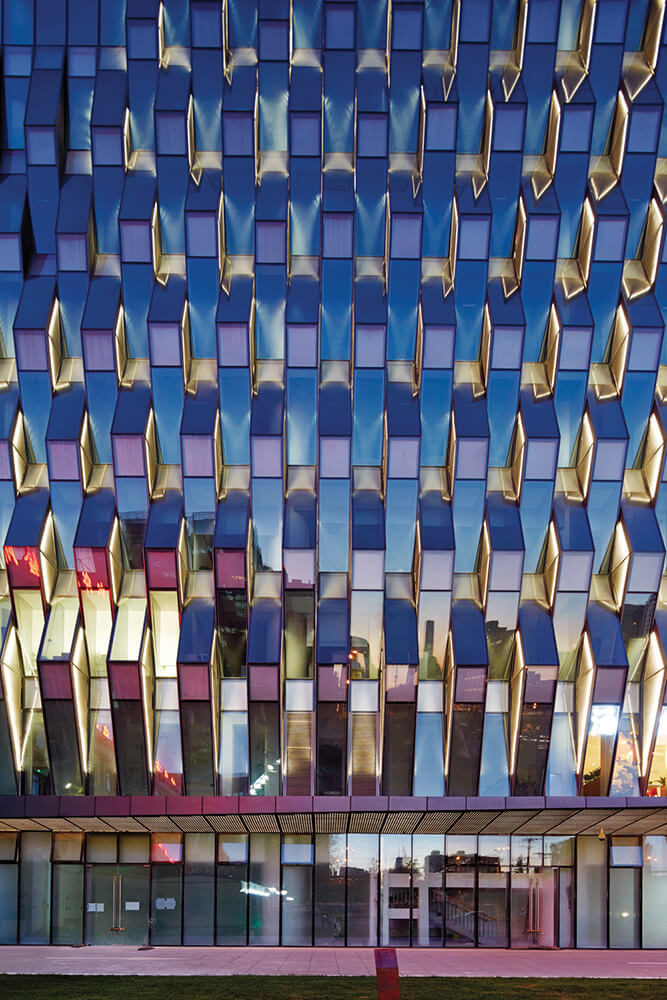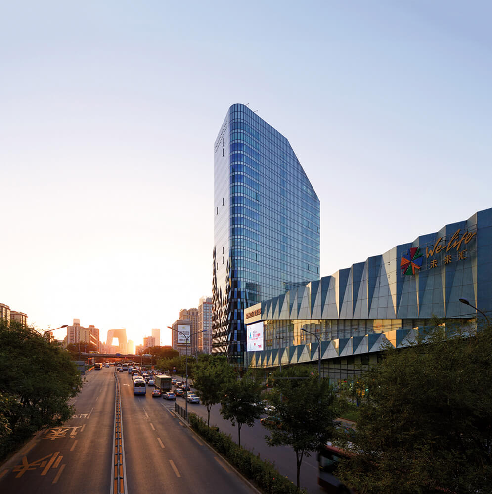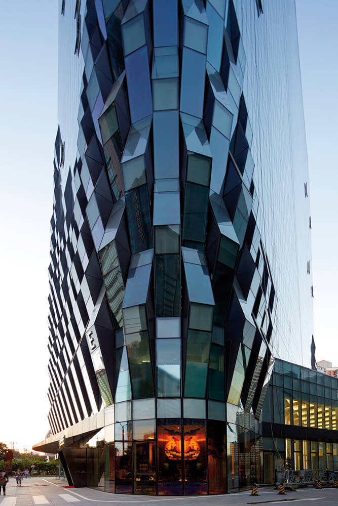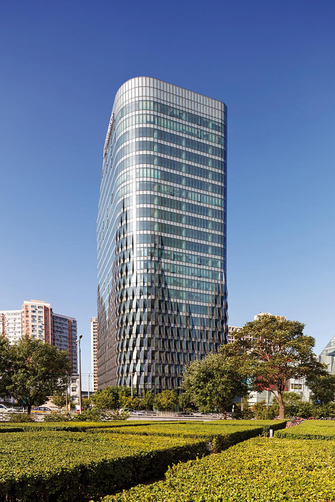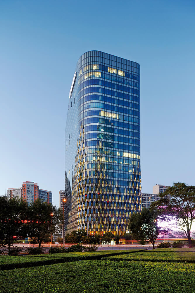 SPARK’s ‘pleated’ and ‘woven’ façade for the award-winning mixed-use development Jing Mian Xin Cheng in Beijing demonstrates that depth of experience need not be forgotten despite the speed of the central city’s expansion. ‘Pleats’ of perforated aluminium sheeting and a ‘weave’ of rippling windows resolve a variety of practical issues while referencing a textile market that formerly operated on the site.
