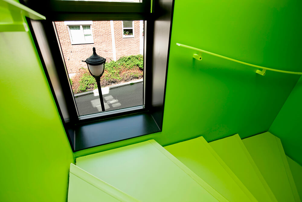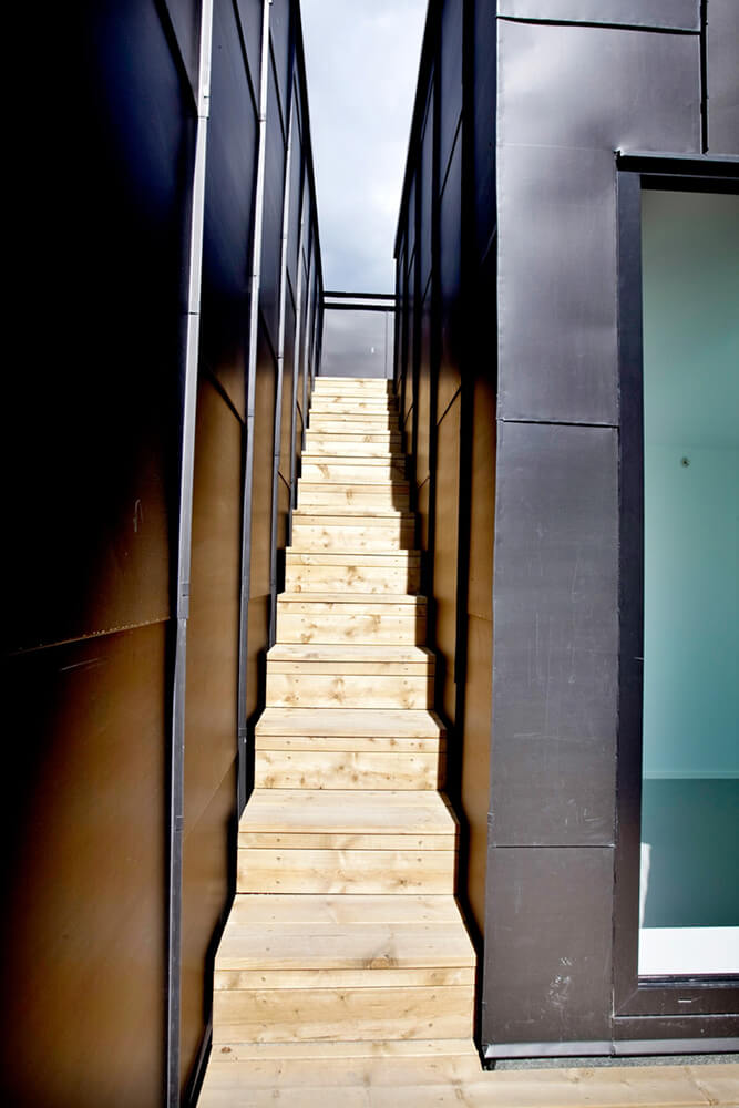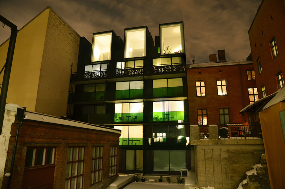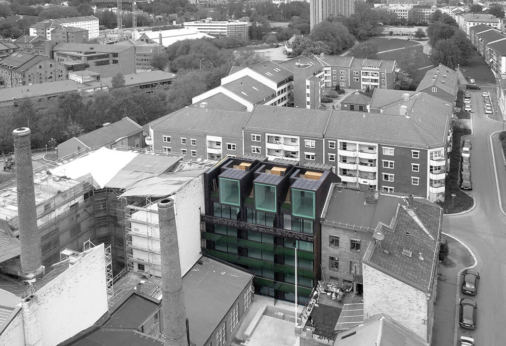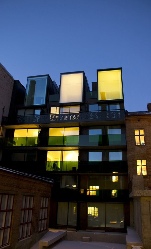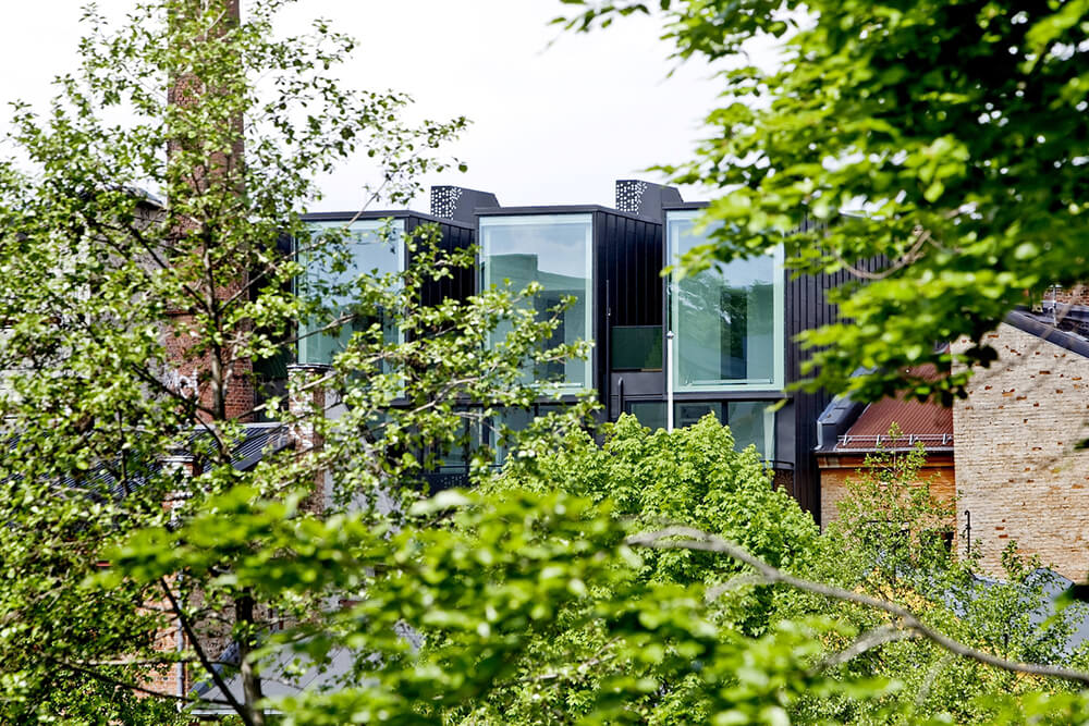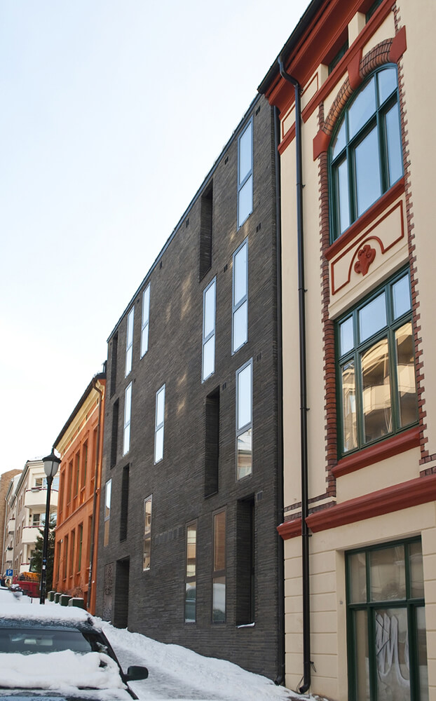The block is a rare remaining example of the intimate blend of housing and small scale industry typical of the 19th century. Special appreciation of these environs was given to the new structure. It is characterized by a distinct architectonical form with functional solutions, thoughtful details and a contemporary overall expression.
