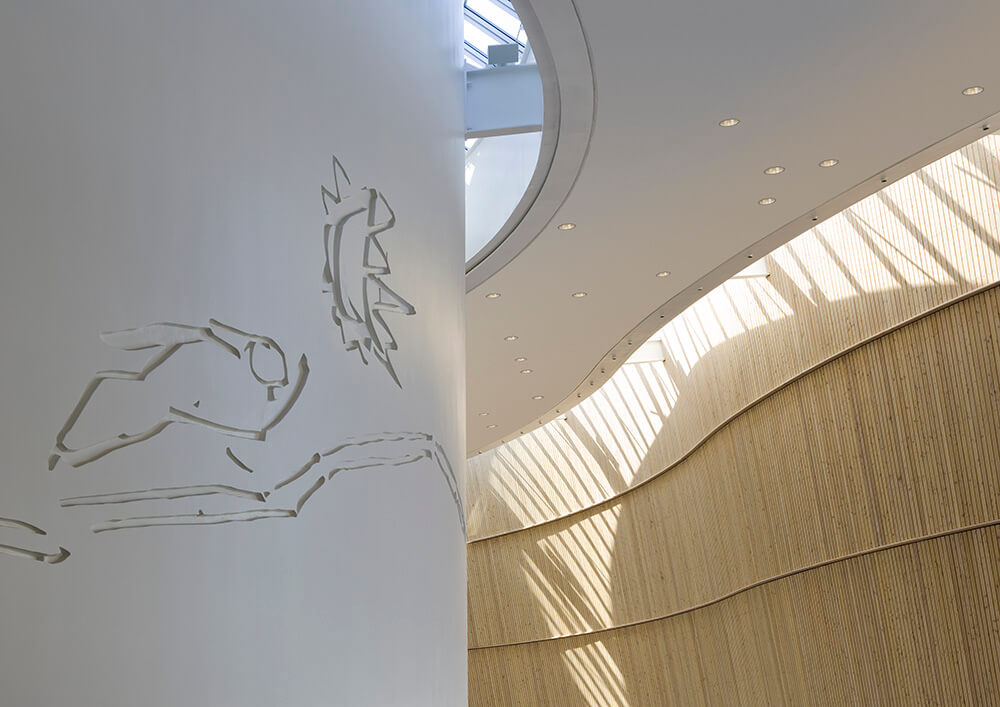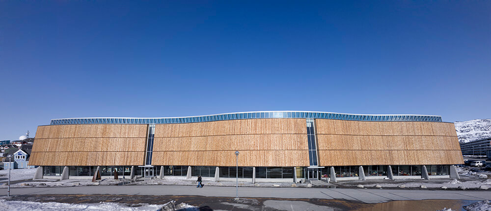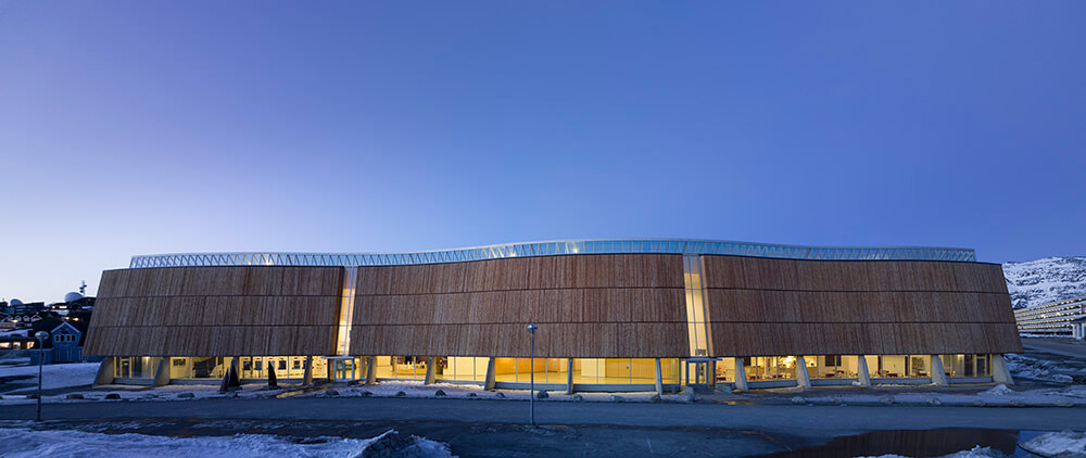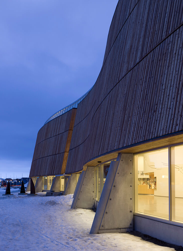 In 1992, an international design competition with 226 proposals gave Schmidt Hammer Lassen the first prize. Their concept was inspired by the dramatic Greenlandic landscape that includes winding fjords, moving glaciers, icebergs and in winter the inspiring, undulating northern lights.
