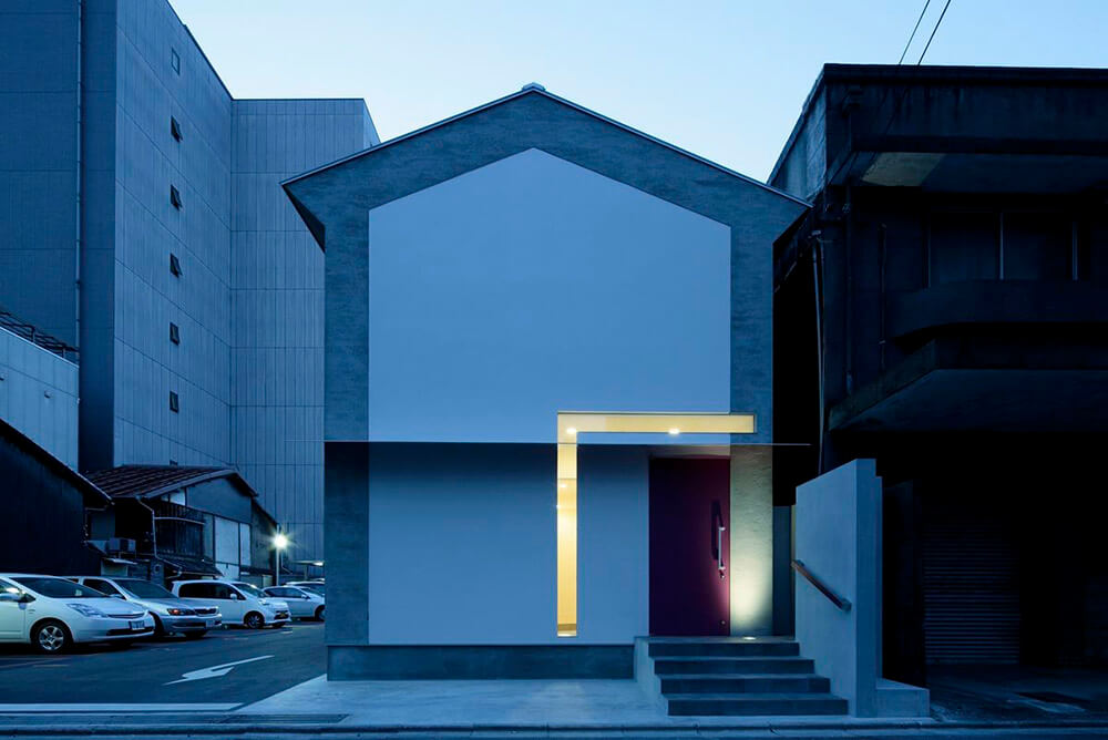 The facade of Keyhole House has the shape of a keyhole, along a narrow street of a crowded town. It is designed as a key itself on the façade of this house. A house can be called a key, which will open up your life happily. And it can be such a small key, like this house that is a key!