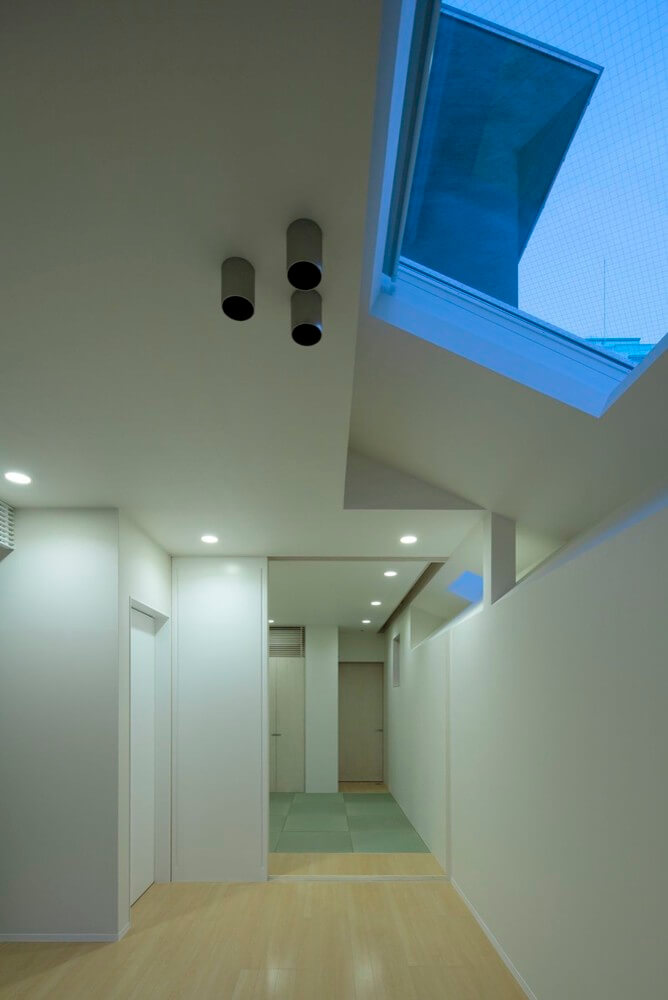 The site is in Kyoto, Japan and its used as a small house for four people and two cats to live. Its floor space is 100 square meters and it is located in the corner of a small parking lot like a table left behind at the seaside.