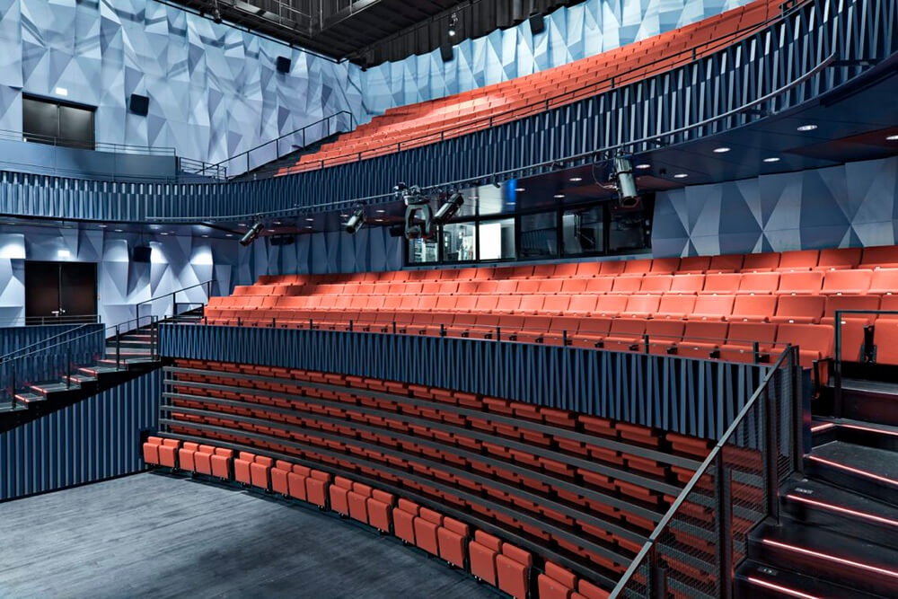 Kilden, a theater and concert hall in Kristiansand, Norway, has brought together all of the Sørlandet region’s performing arts institutions under one roof. Kristiansand Symphony Orchestra has a concert hall accommodating 1,200 attendees. The Kilden Theater is performing in a theater hall with a capacity of 700, that can be transformed to also accommodate opera performances by Kilden Opera. In addition, there is a smaller stage for experimental theater and a multi-purpose hall with a level floor.