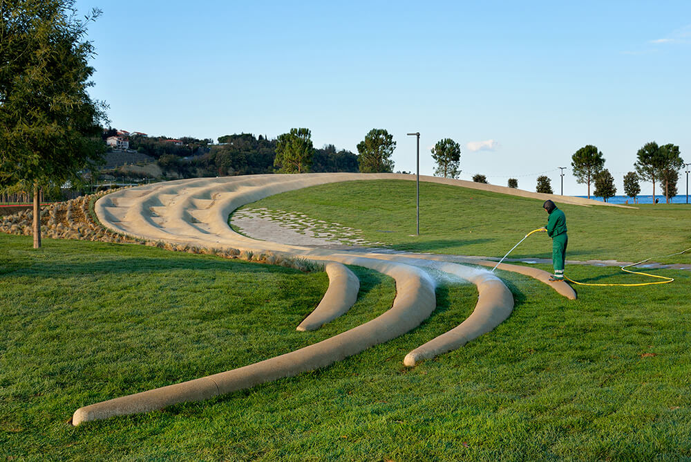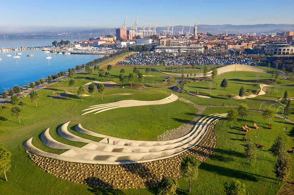 The innovative layout of the city park is a great new asset for the citizens of Koper as it enables the development of programmes which the city presently cannot offer. The new park is an attraction and with its unique form and the manner of spatial organisation, it transcends a merely functional park regulation. It represents a prototype for further designing of the wider area, as well as motivation for development-oriented attitudes in regard to other sections of the Slovene seacoast currently in a state of decay.