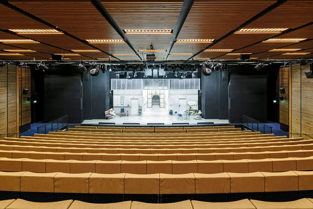 The only visible alteration when approaching the theatre from the city centre is the four meter elevation of the theatre tower. The stage technology for the main stage has been completely updated, and the tower has been raised. The add-on forms a glowing glass lantern, leaving the distinctive shape of the old tower recognizable.