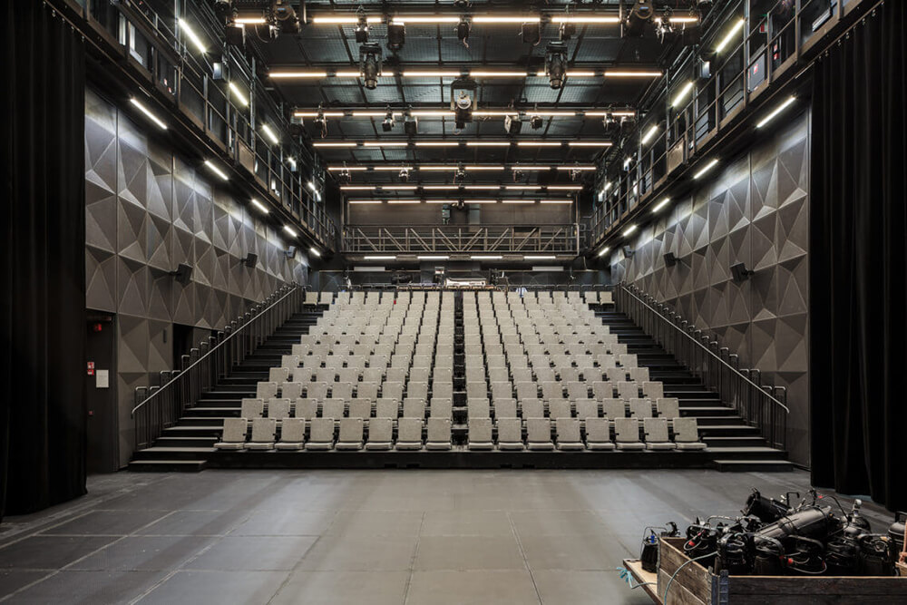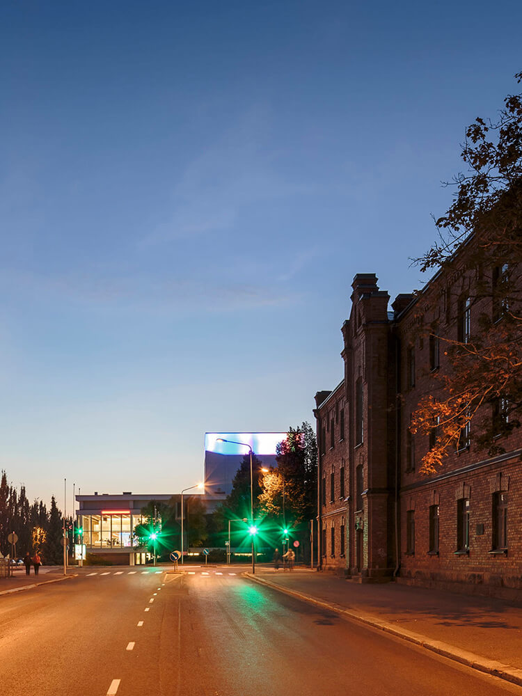 The old Kuopio City Theatre is a 1960’s modernist building by architects Helmer Stenros and Risto-Veikko Luukkonen. The expansion includes a new 200-seat studio stage with flexible seating and stage mechanics. New spaces are also provided for loading and logistics, costume manufacturing and storage, and support functions of the new stage.