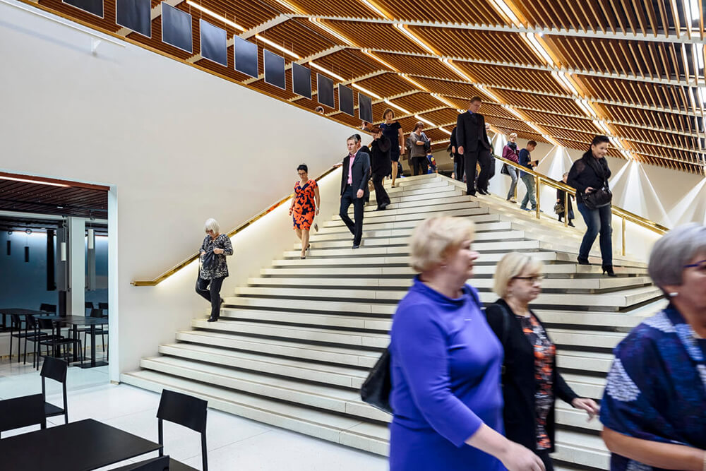 Collaborators: Insinööritoimisto Tanskanen (structural engineering), Granlund Kuopio (HVAC), Insinööritoimisto Tauno Nissinen (electrical engineering), City of Kuopio Survey Division (geo planning), Blue Node (theater technics), NCC Construction (construction)