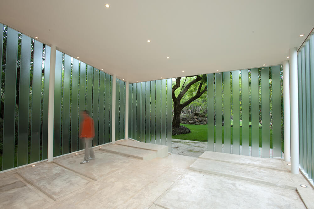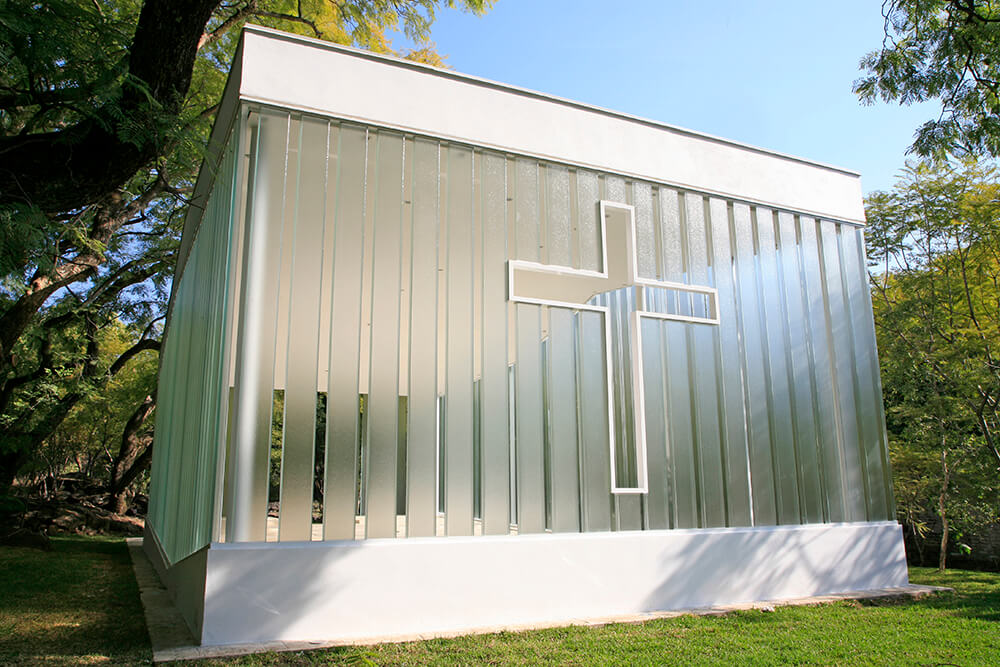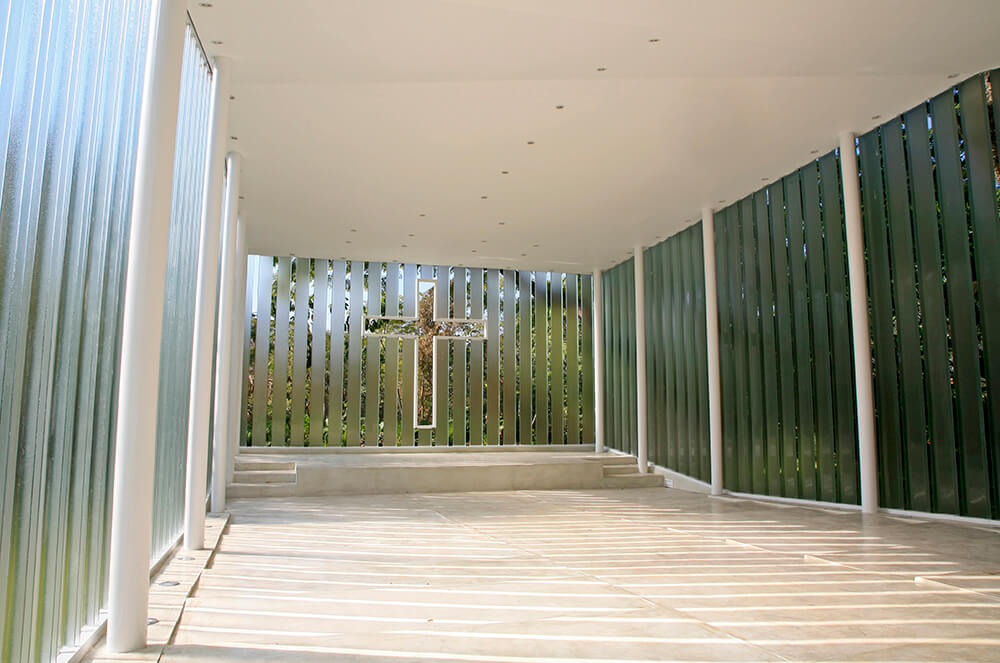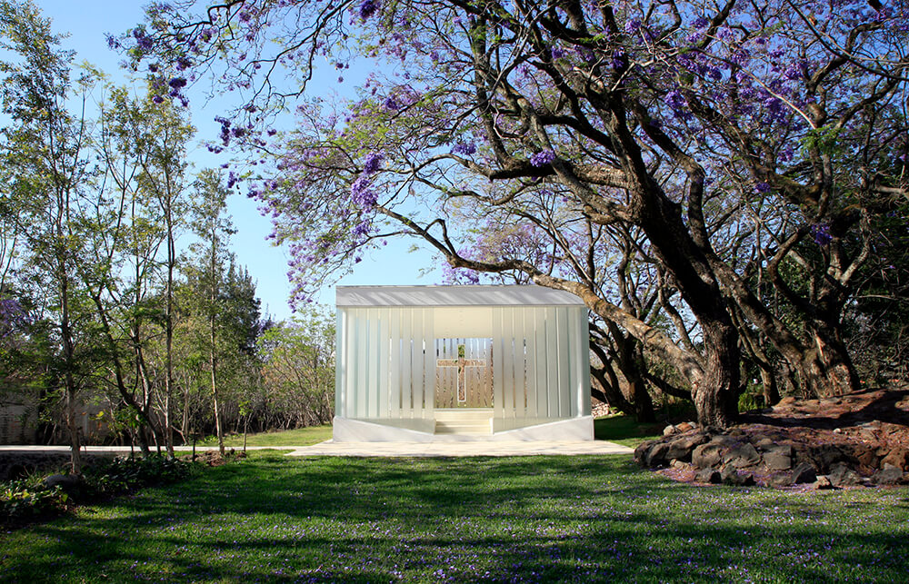 The site for the chapel was carefully chosen within an enormous area of abundant vegetation. The architects selected a location that would not require the removal of any of the existing plants or trees, under large jacarandas which form a natural arch over the chapel and provide it with ample shade. They strived to bring about the least possible impact on the site.