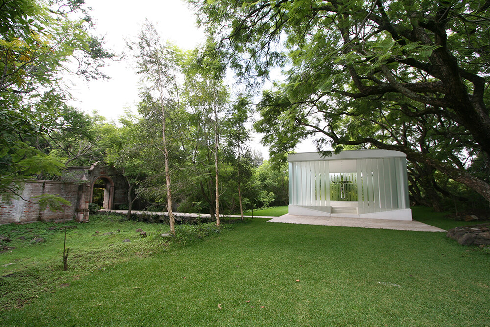 A glass chapel in a warm tropical climate seems like a contradiction in terms. How could BNKR Arquitectura avoid it from becoming a GREENHOUSE? (They disapproved of the use of air conditioning given the size of the project and the environmental issues it engenders.)