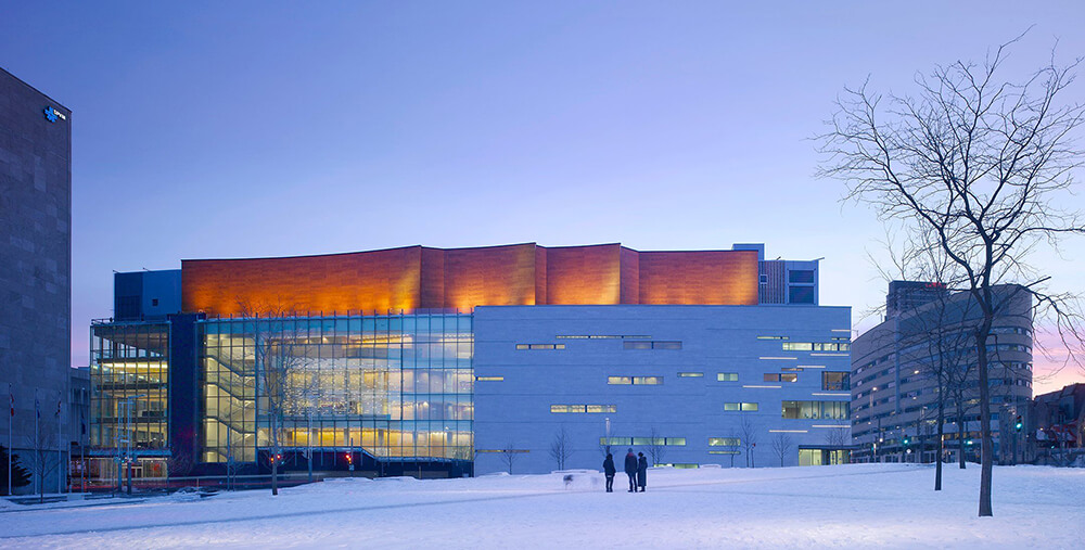 La Maison Symphonique is situated on the north-east corner of Montreal’s Place des Arts. It terminates De Maisonneuve Blvd, facing a new park and sitting before one of the Quartier des Spectacle’s outdoor festival venues. Inside, sophisticated variable acoustics and theatre systems enable sound to be tailored to accommodate a wide range of music performances.
