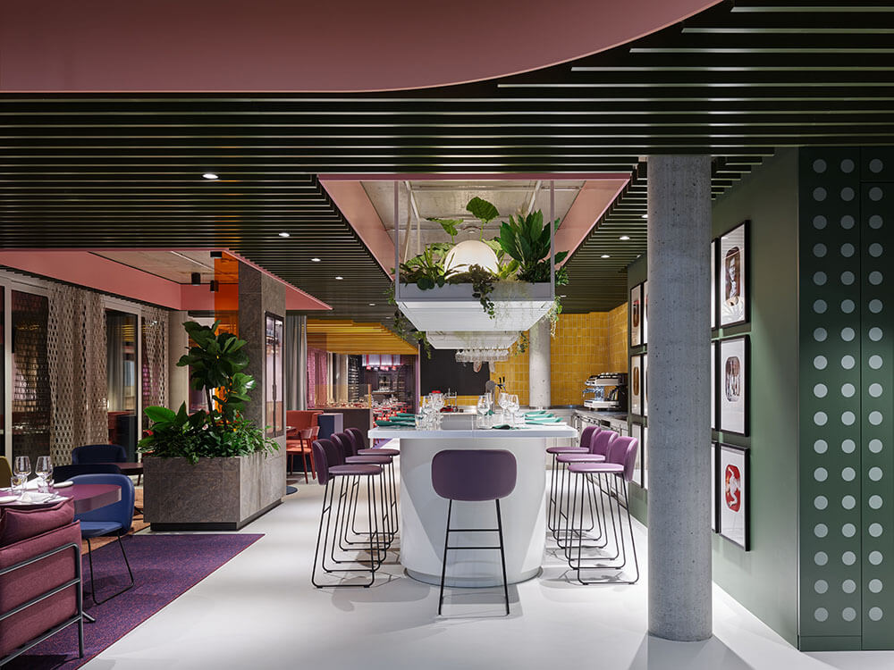 With ‘Object Campus – City of Visions’, carpet supplier Object Carpet has built a temple to the concept of networking: Companies from all sectors and the whole region come together here, creating vital cross-industry synergies. The centerpiece here is La Visione, an Italian restaurant for which Ippolito Fleitz Group has developed both the interior and the brand design.