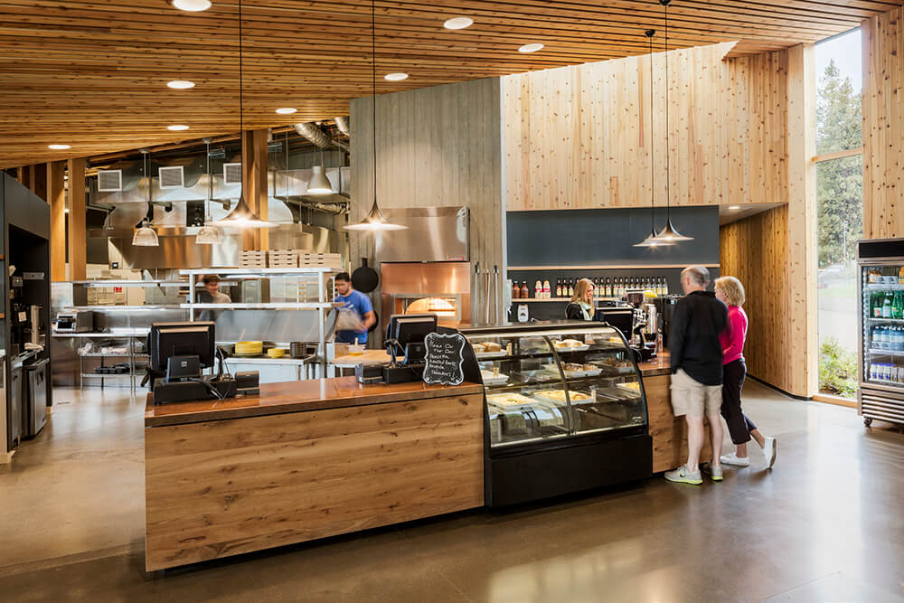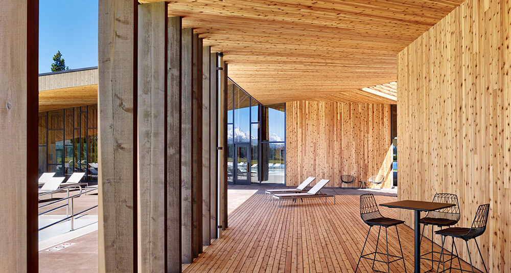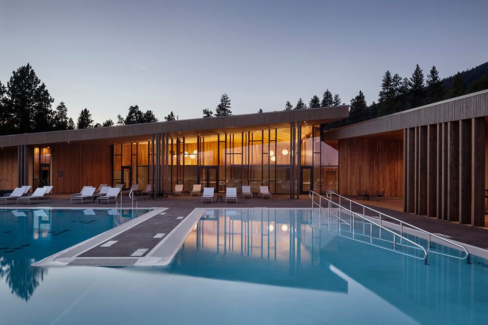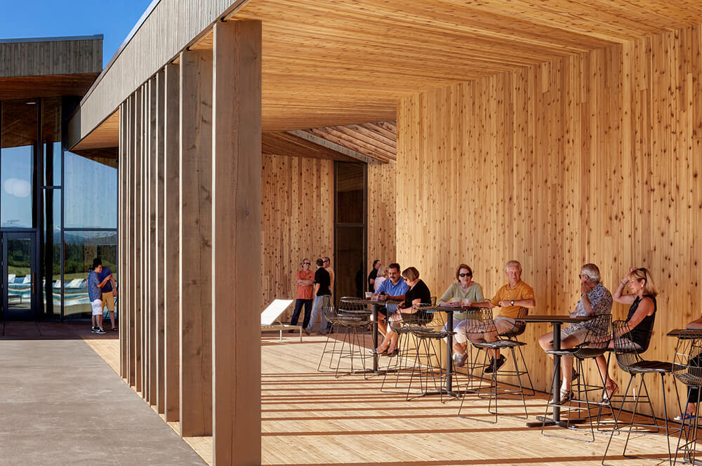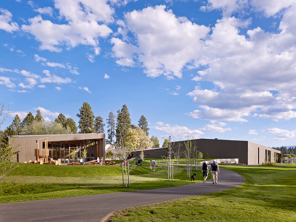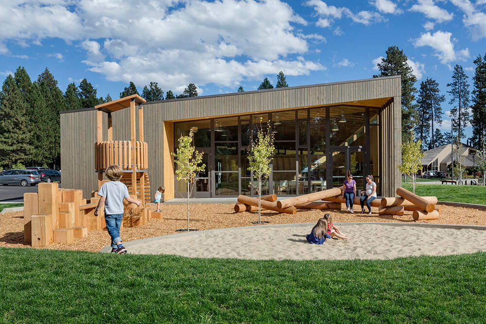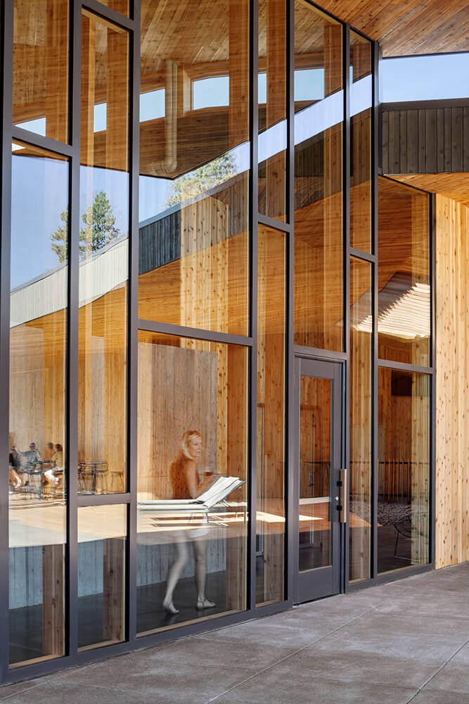 Black Butte Ranch – an iconic resort community located near Sisters, Oregon – sits at the gateway to Oregon’s high desert. First planned in the early 1970s, the Ranch is a vacation destination for many, and a year-round home for some. The new 15,000-square-foot “Lakeside” replaces the well-worn main pool facility and revives the “heart” of the Ranch. The two buildings house a Bistro with indoor and outdoor seating, an outdoor pool and hot tub, locker rooms, a fitness room, an activity center for kids and teenagers, and an outdoor play area for kids. The design set out to do three things: evolve the legacy of Pacific Northwest regional modernism at the Ranch, intensify the connection to the landscape, and enhance the user experience.