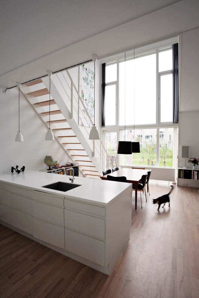 Prioritizing the common spaces and the community of the families living here, the building was designed as a typical Danish block, surrounding a large common courtyard – a common green garden space.