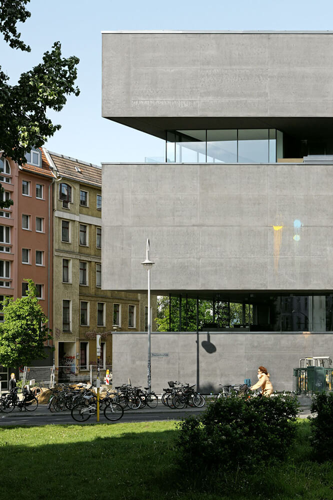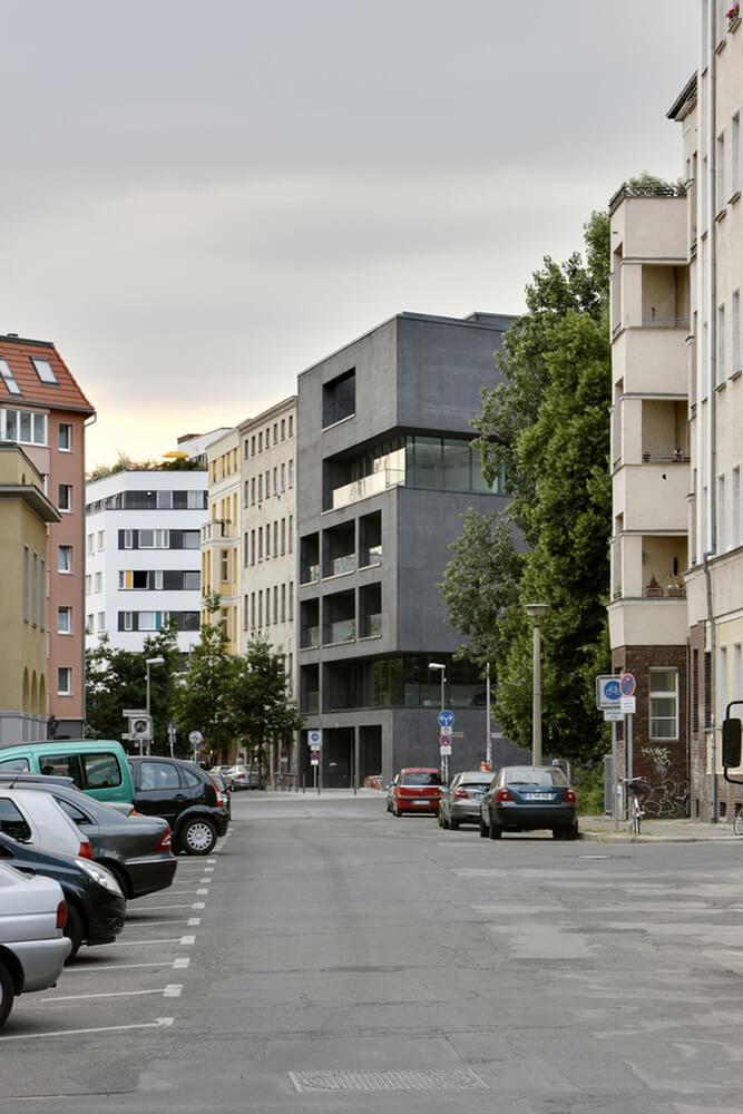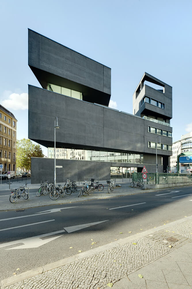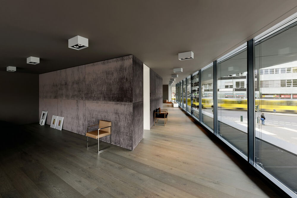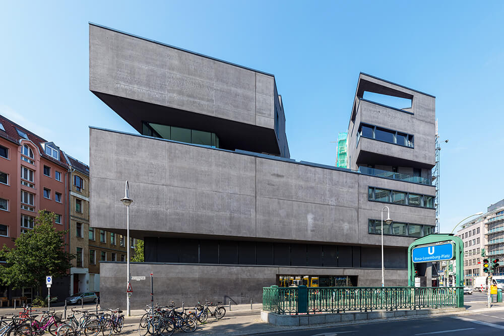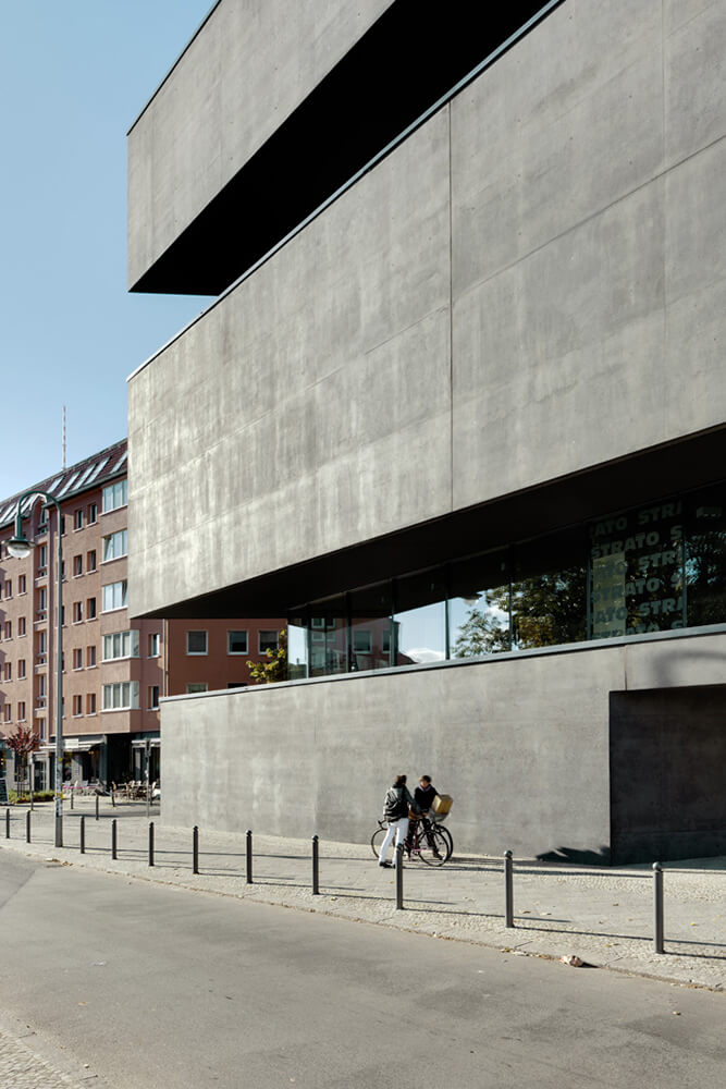 Sited amidst architect Hans Poelzig’s heritage-protected urban ensemble, L40 is a collaborative design by artist Cosima von Bonin and Roger Bundschuh, initiated by the Verein zur Förderung von Kunst und Kultur am Rosa-Luxemburg-Platz e.V. Exposed black concrete is the expression of its monolithic, sculptural form.