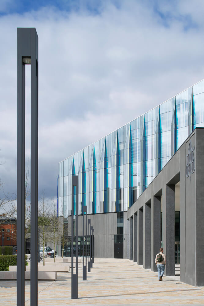 A unitised dichroic glass envelope playfully casts shards of multicoloured light across the concrete interior, much like a giant kaleidoscope. The Business School encompasses formal teaching spaces, while The Hub offers a vibrant street café ambience where students trade ideas and knowledge. It is the antithesis of the archetypal cloistered halls of academia.