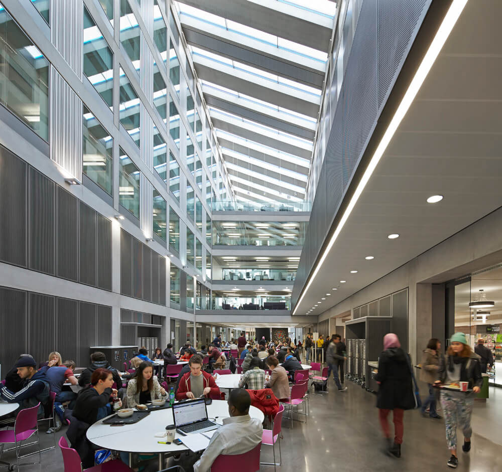 The faculty accommodation brief consisted of a series of set-piece teaching spaces. However, bringing those areas together required contrasting non-standard ‘social learning spaces’ where ideas could circulate freely.