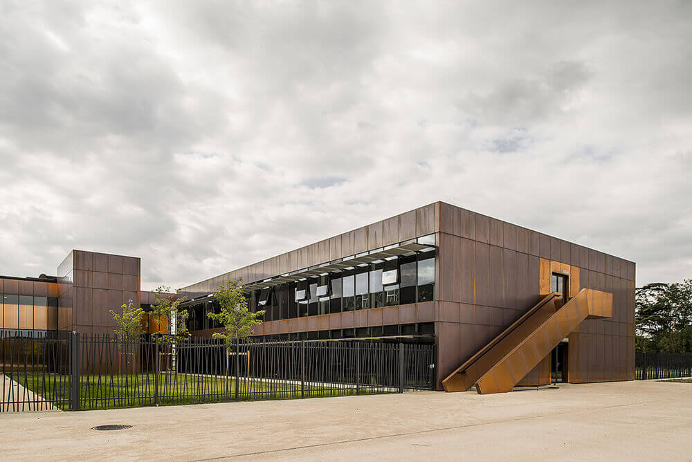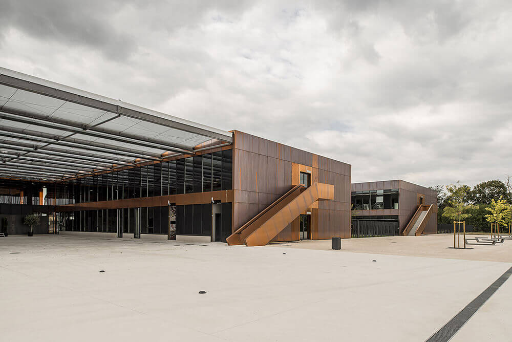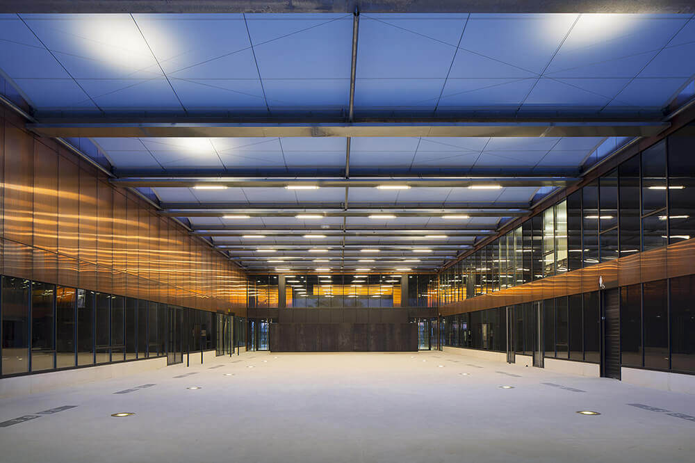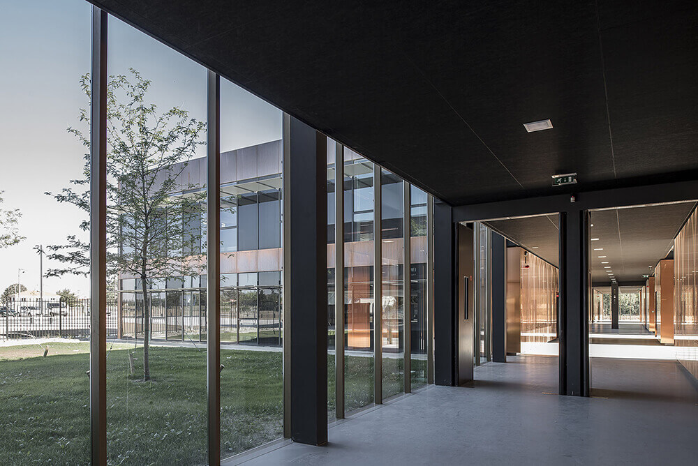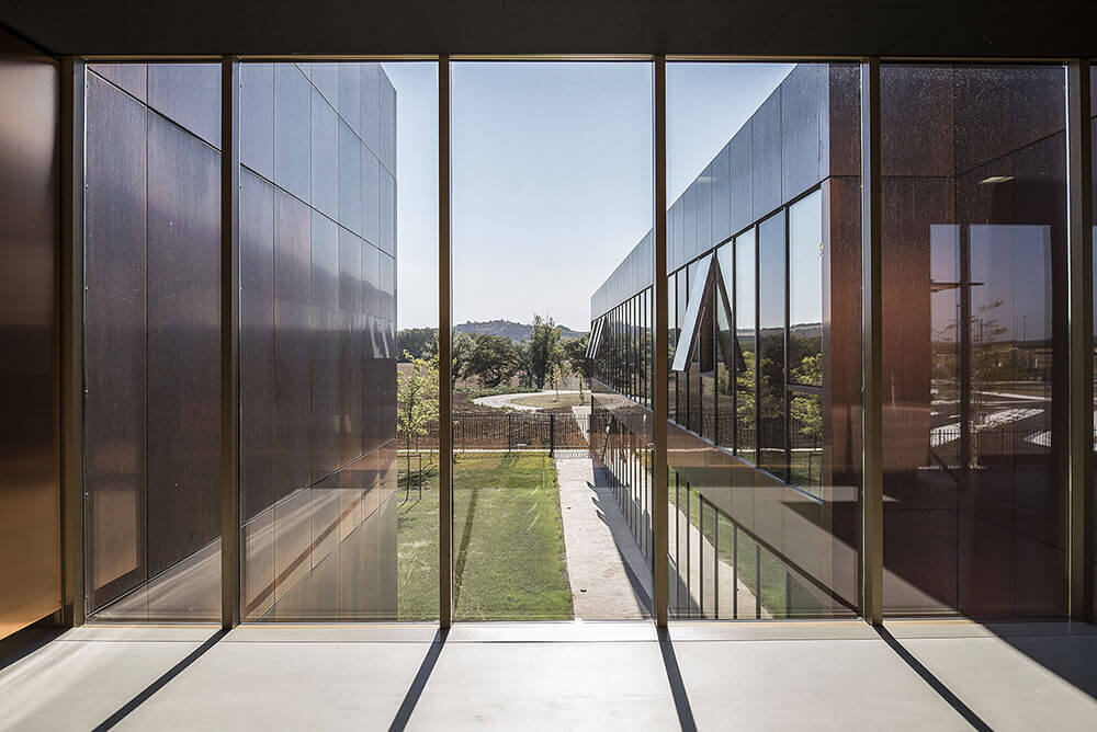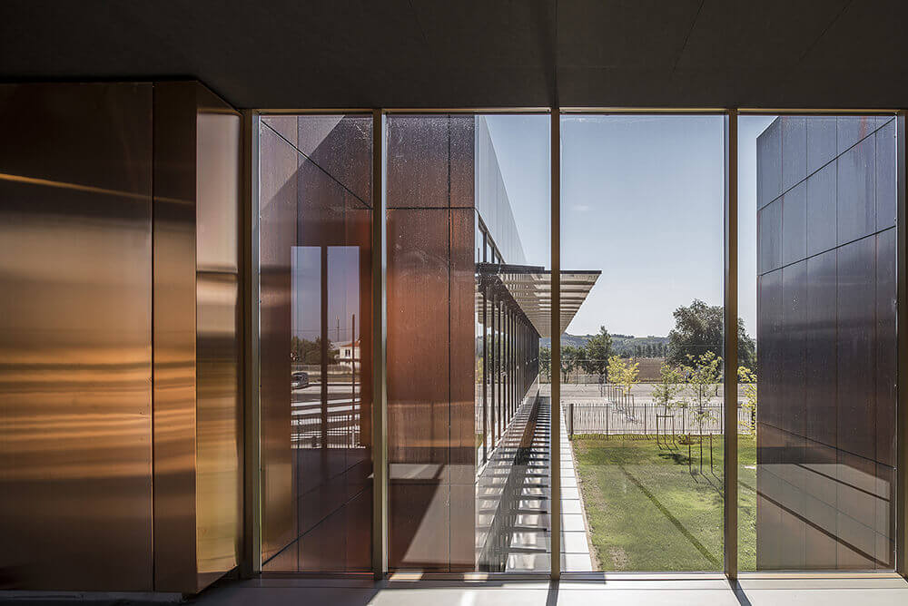 For communication and education, premium glass transcribes the educational of exchange and openness. The volume created by glass and aluminium bars alongside copper siding seems to play a stretching game.