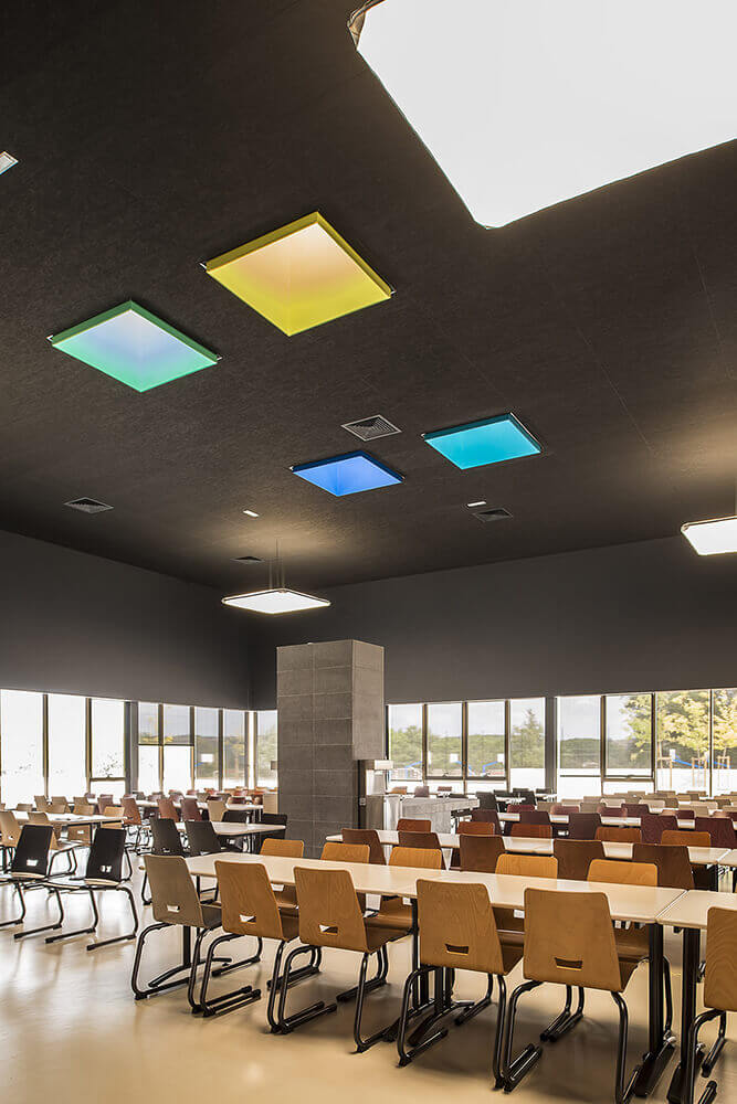 On the civilian side the school plays the role of a public building, on the inside it expresses friendly identity.