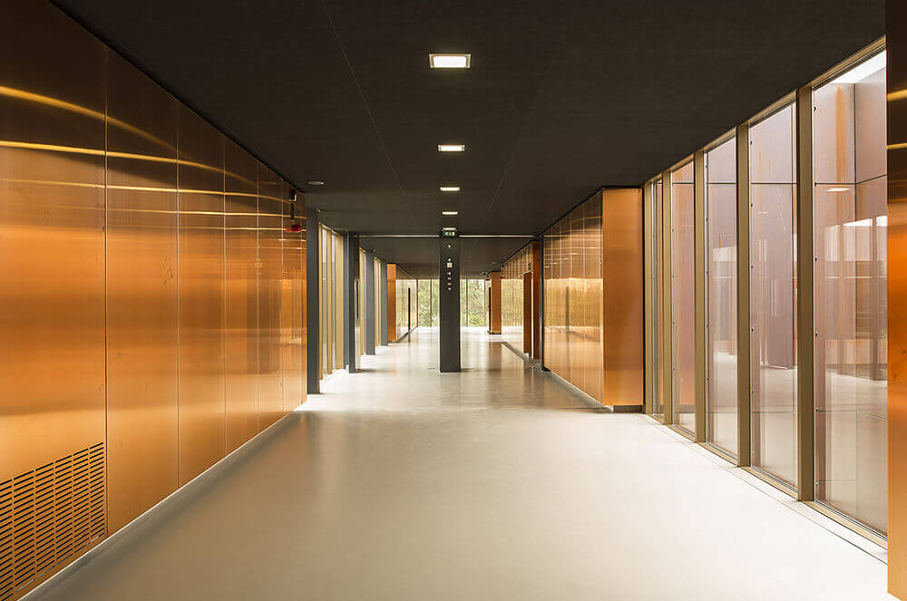 The copper, a material that is natural and alive, serves the intention of giving the building a skin which patina would smooth with the age while also reinforcing value of sustainability.